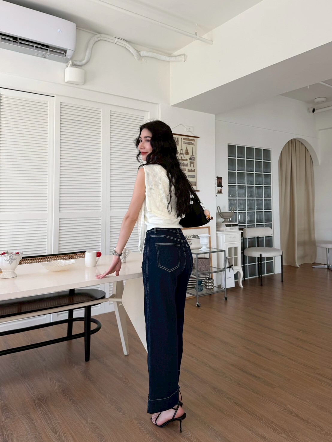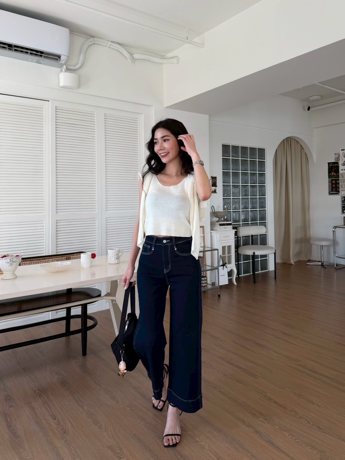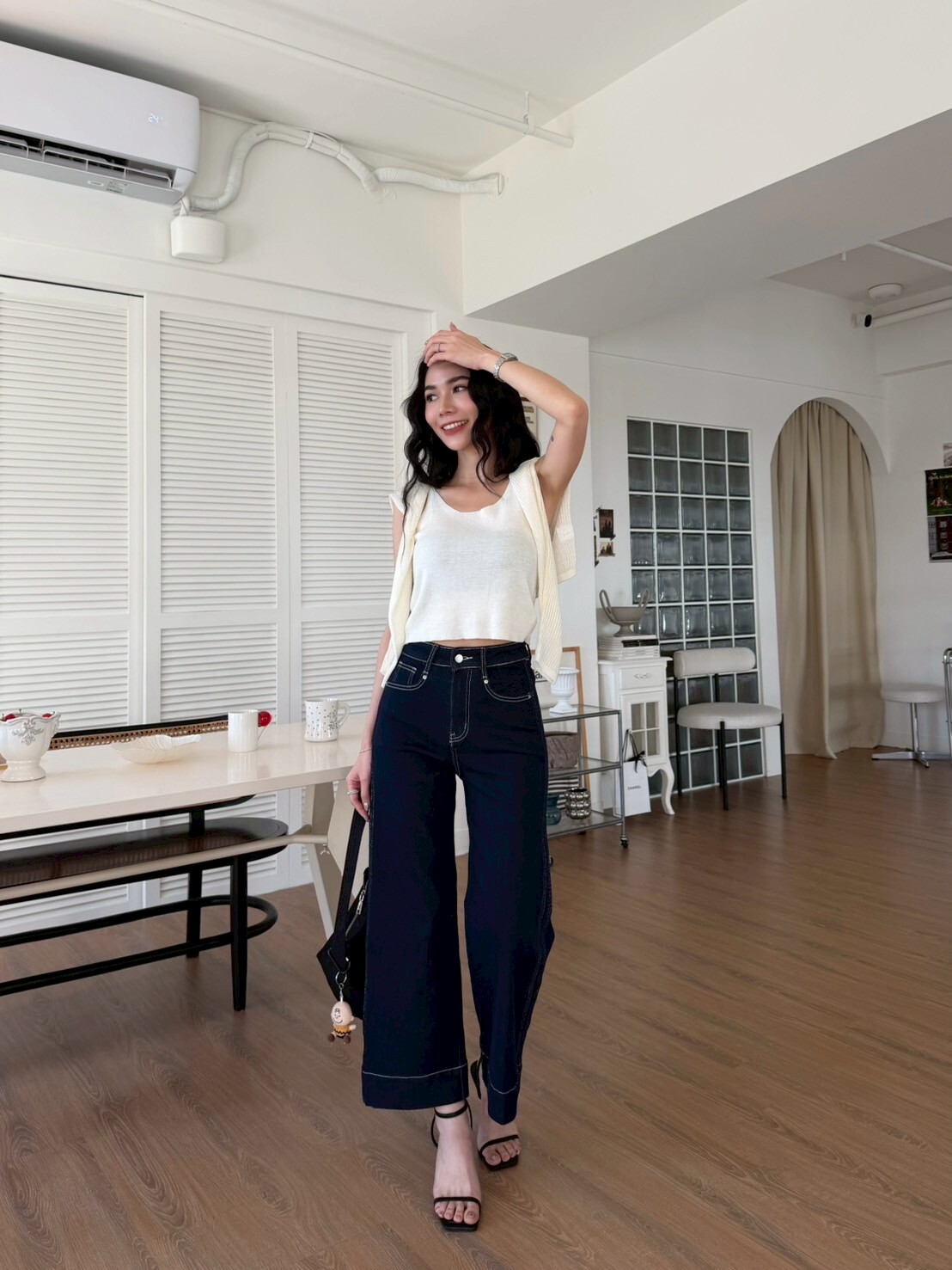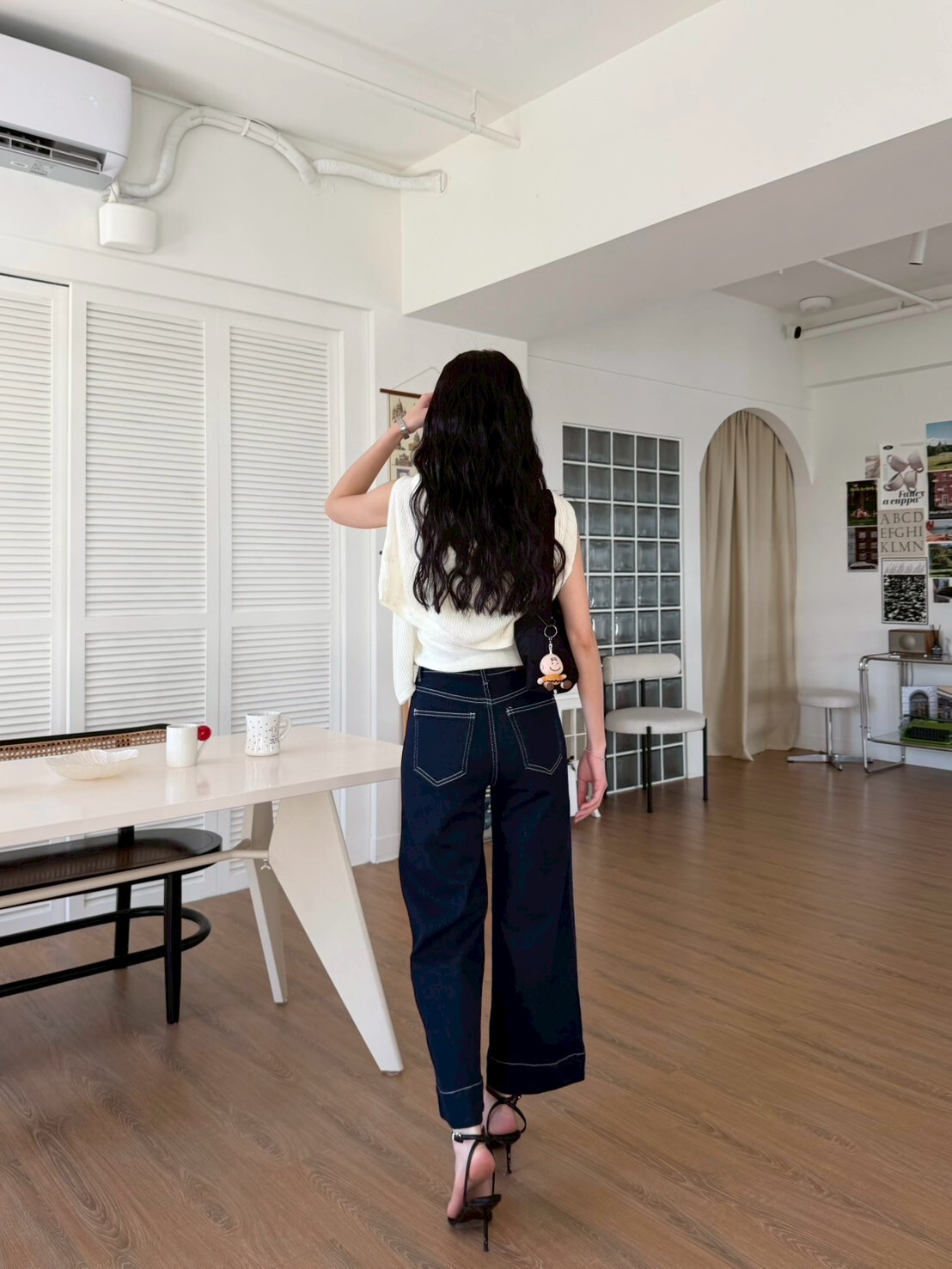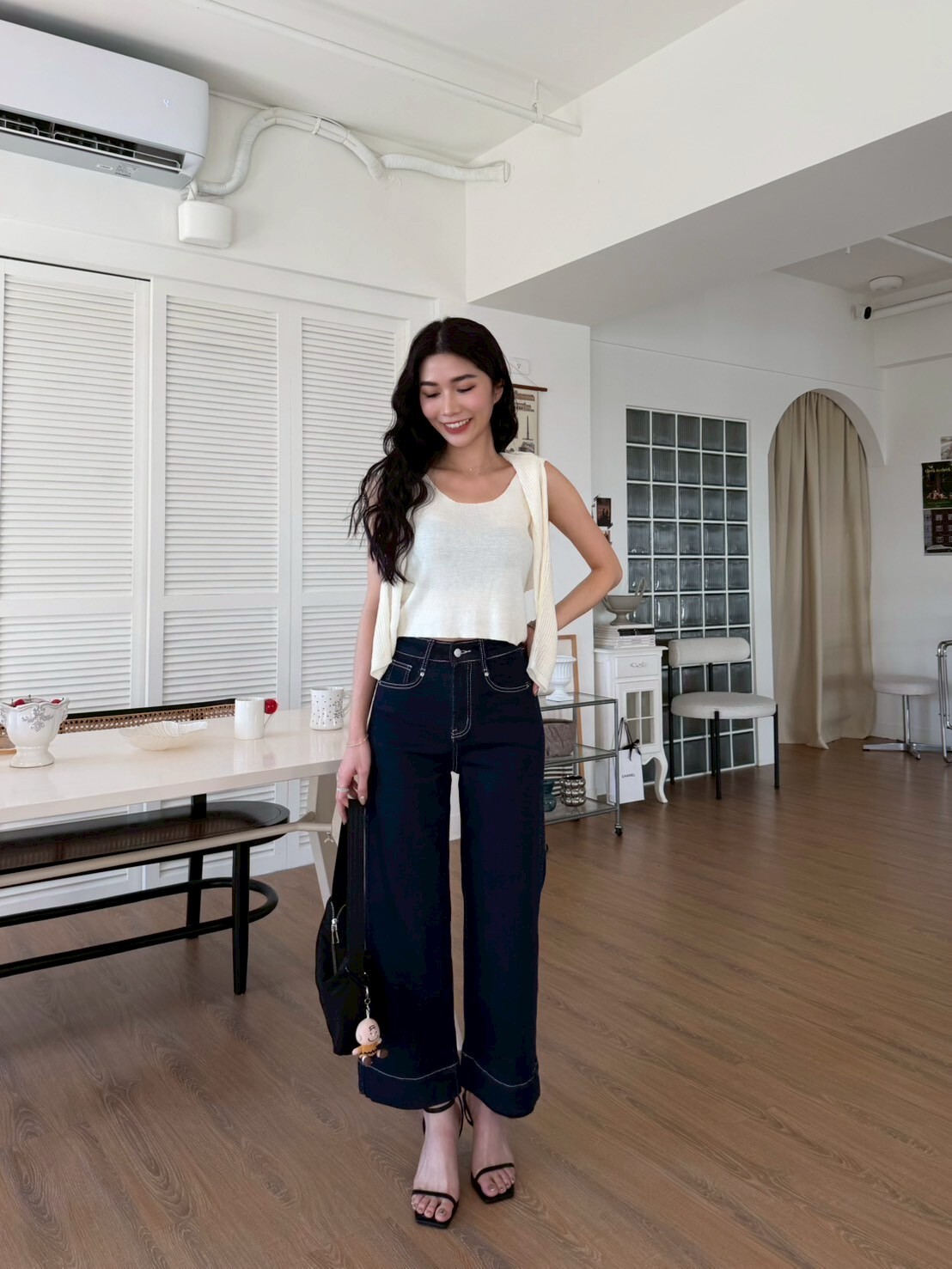 車縫線八分牛仔寬褲