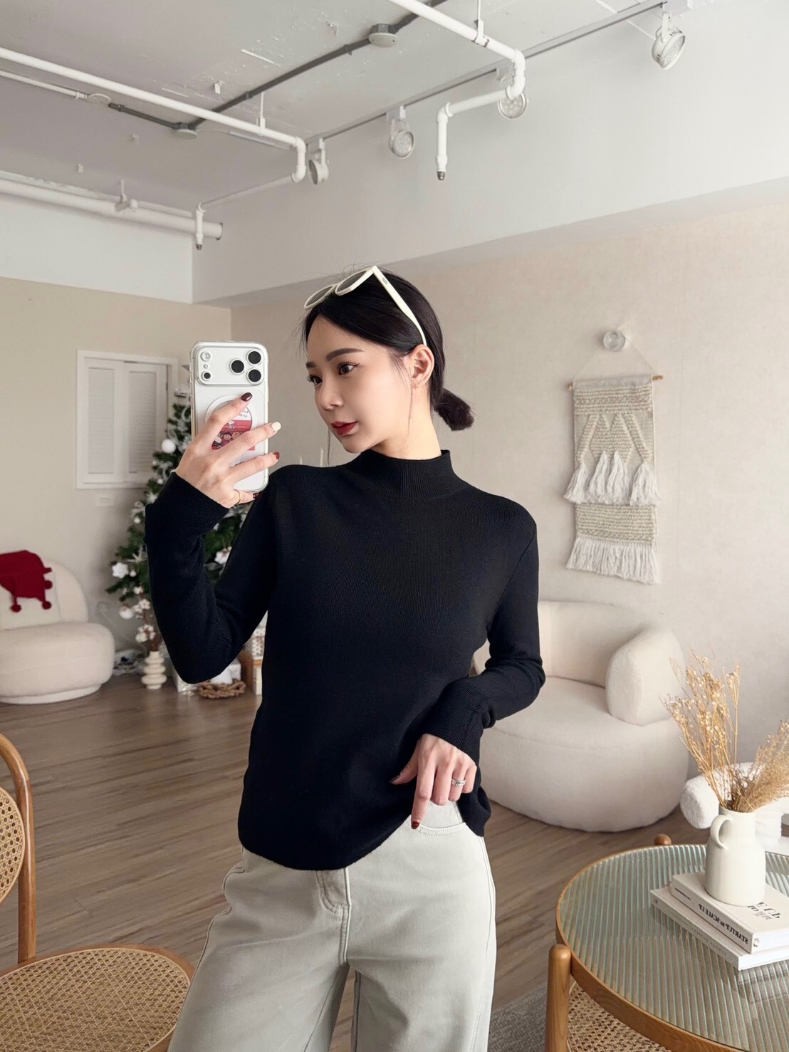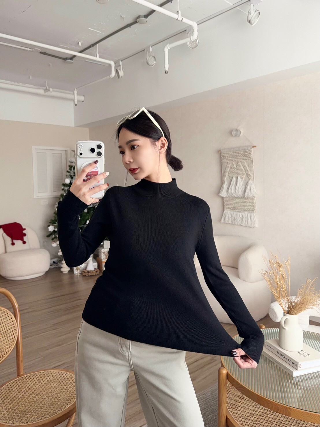 微高領針織打底上衣