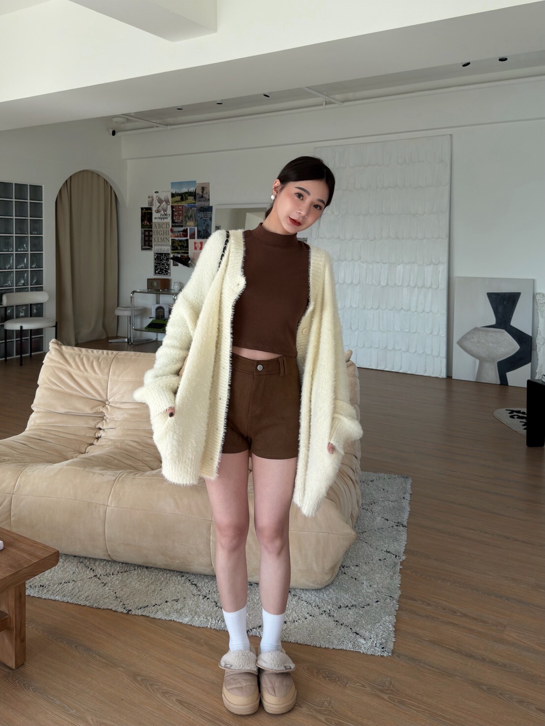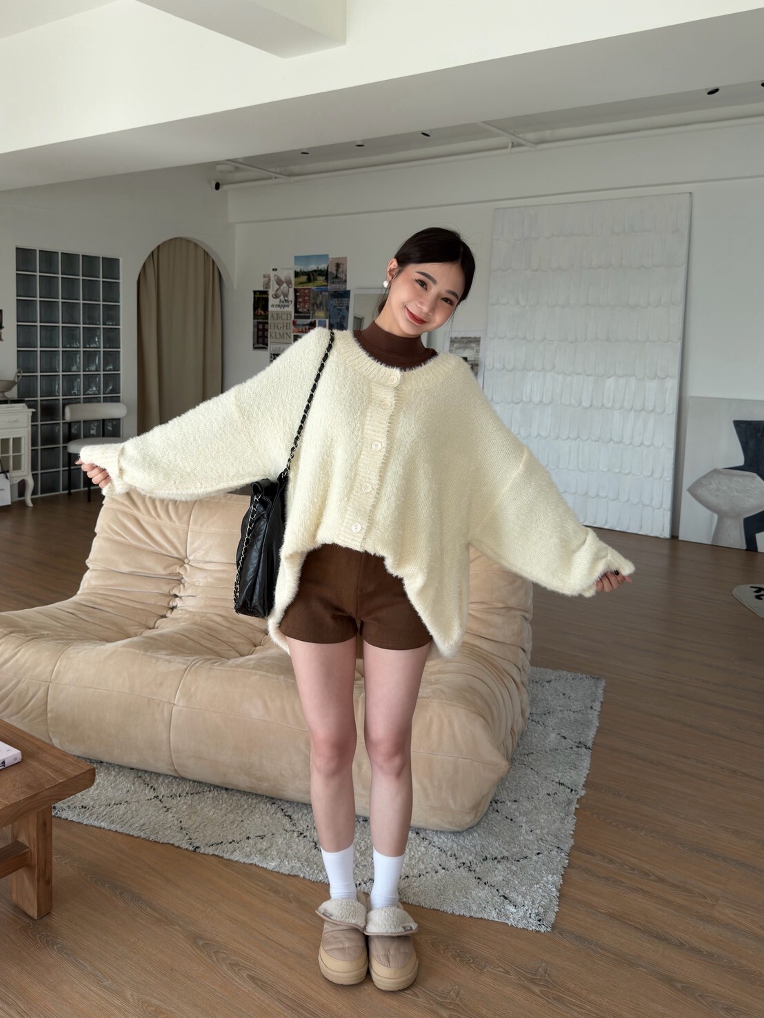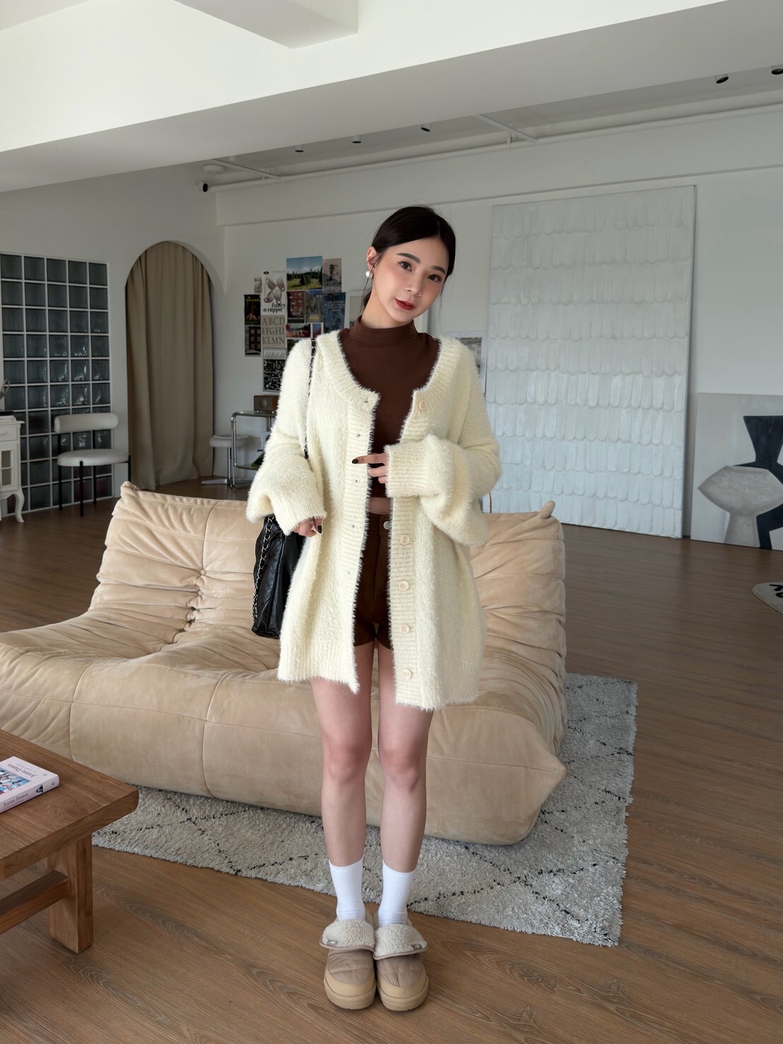 慵懶排釦毛毛針織外套