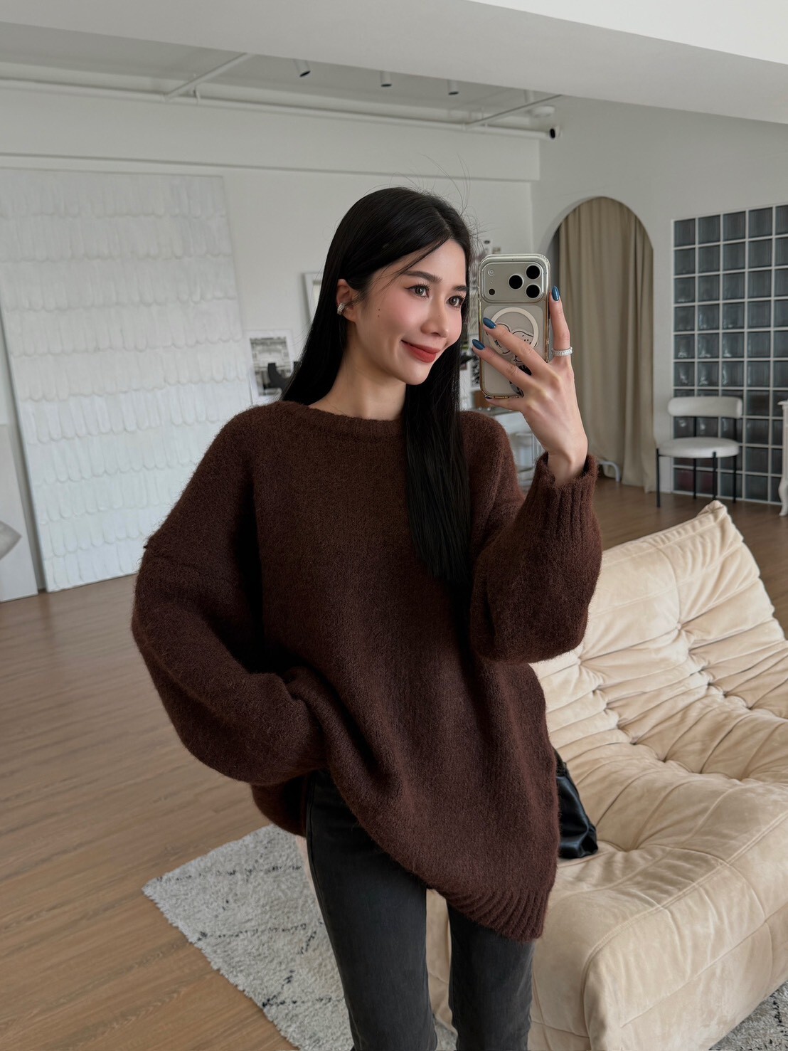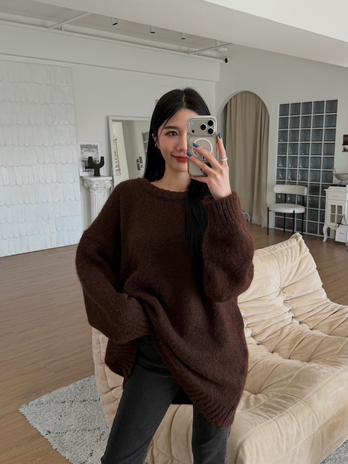極簡圓領針織上衣