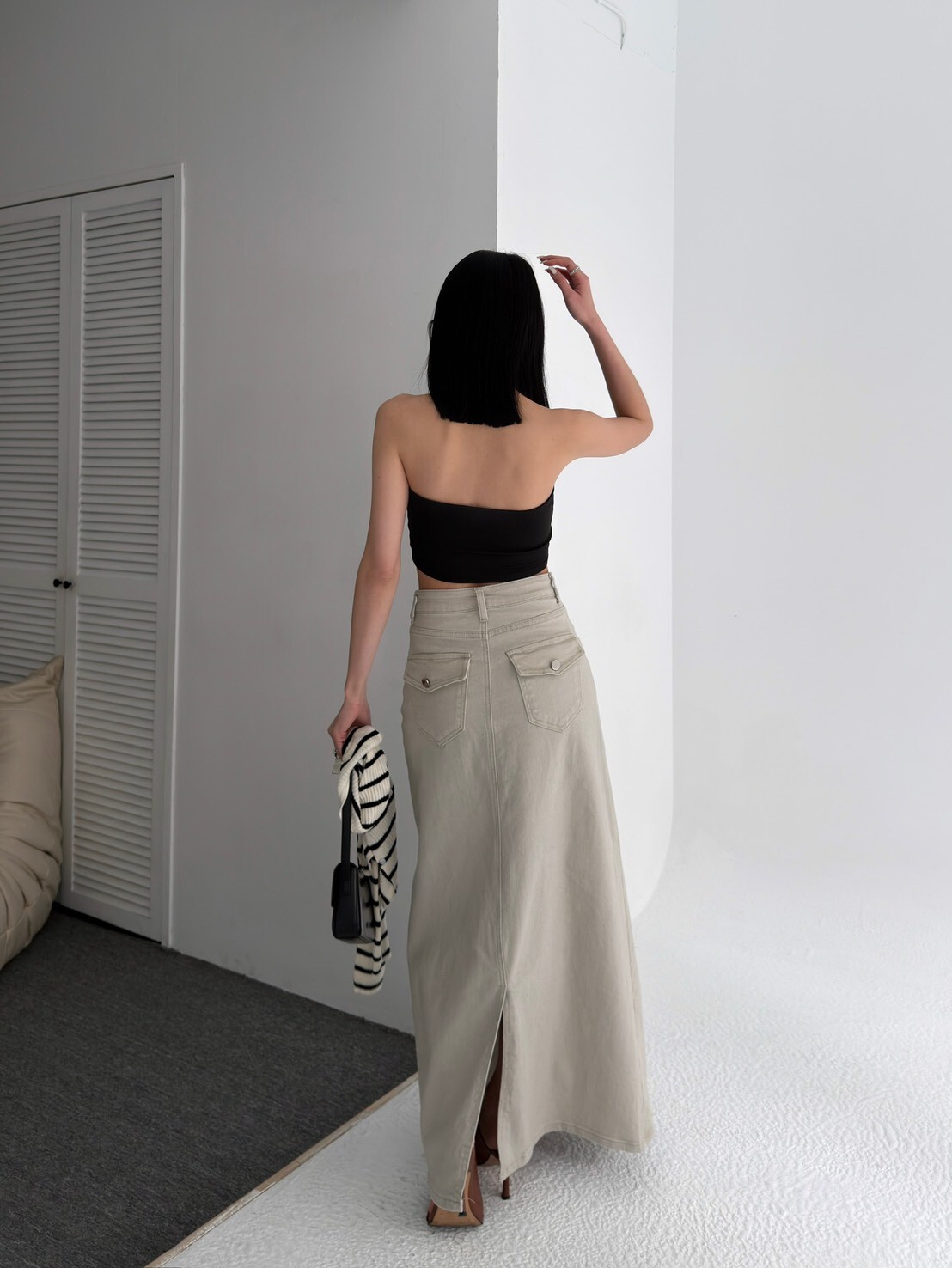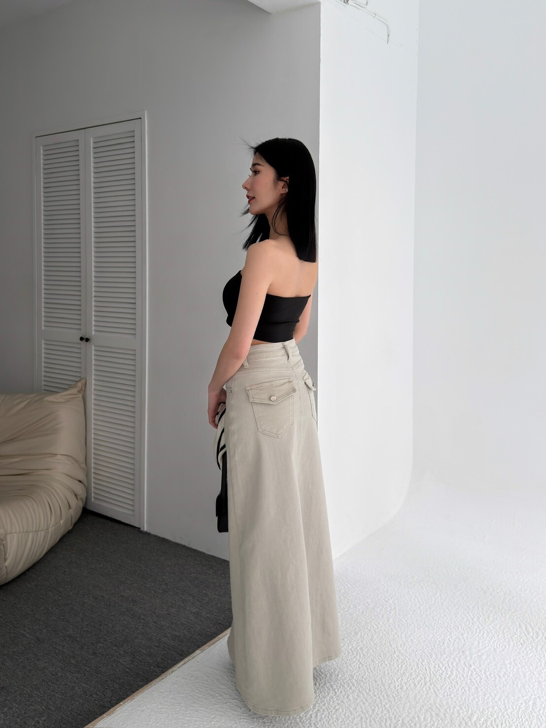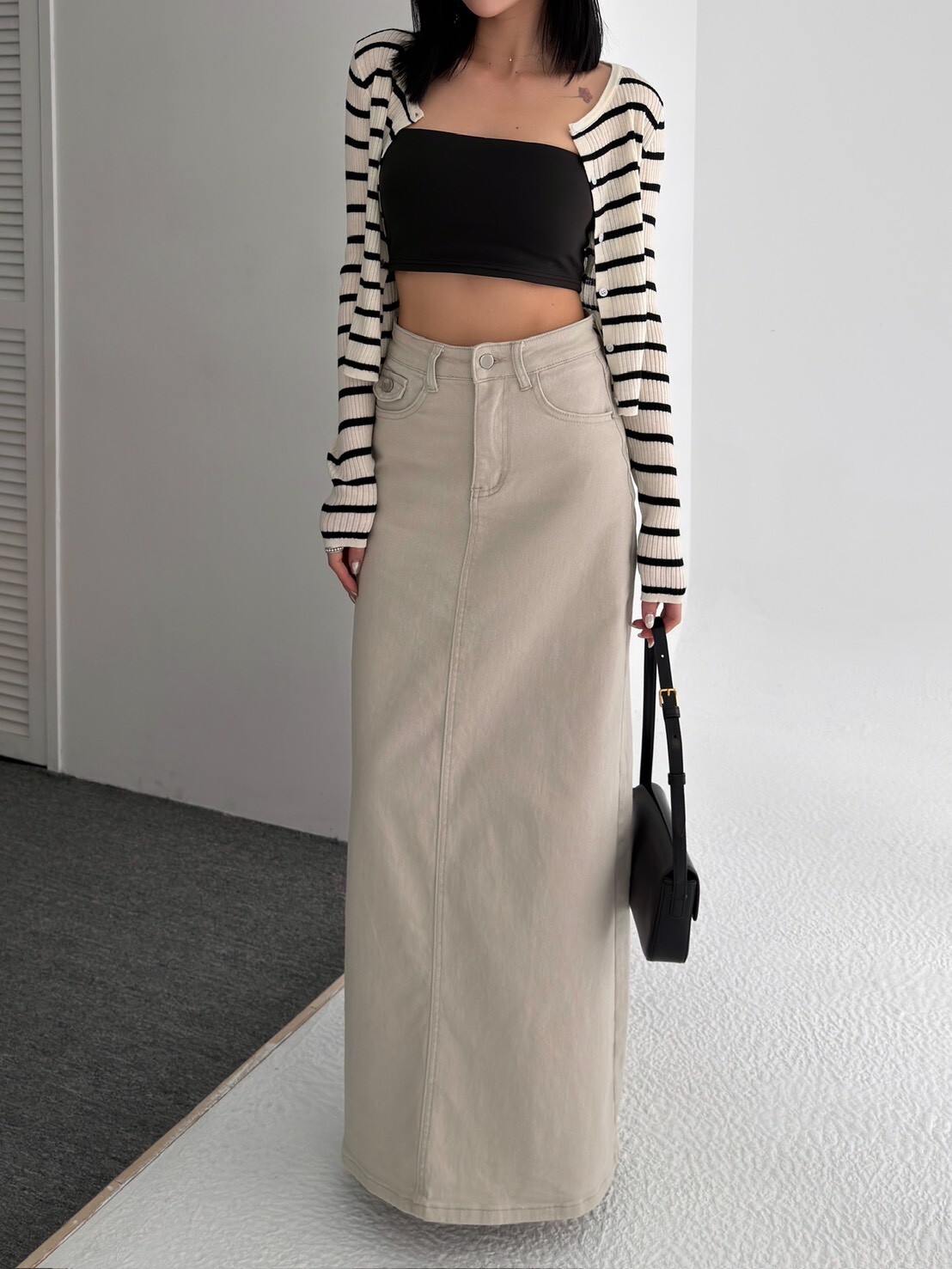 大推!後口袋彈性牛仔長裙