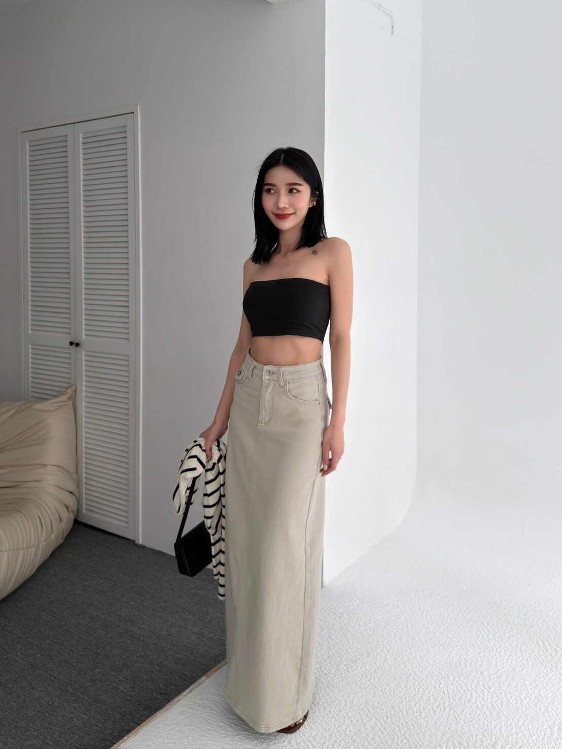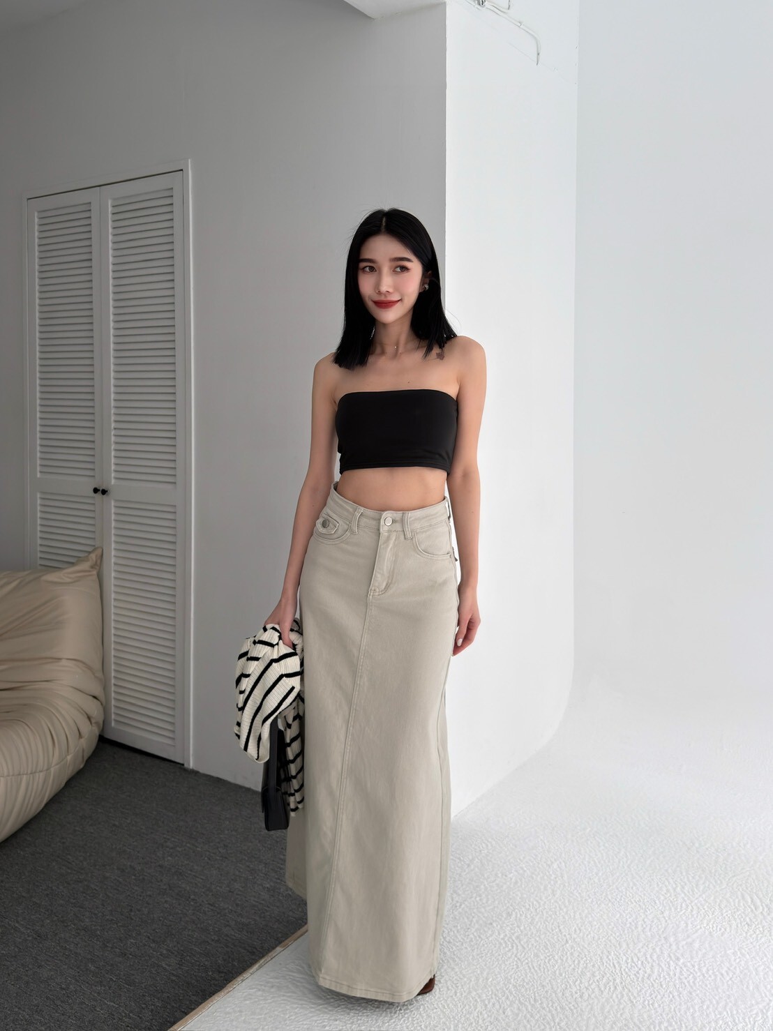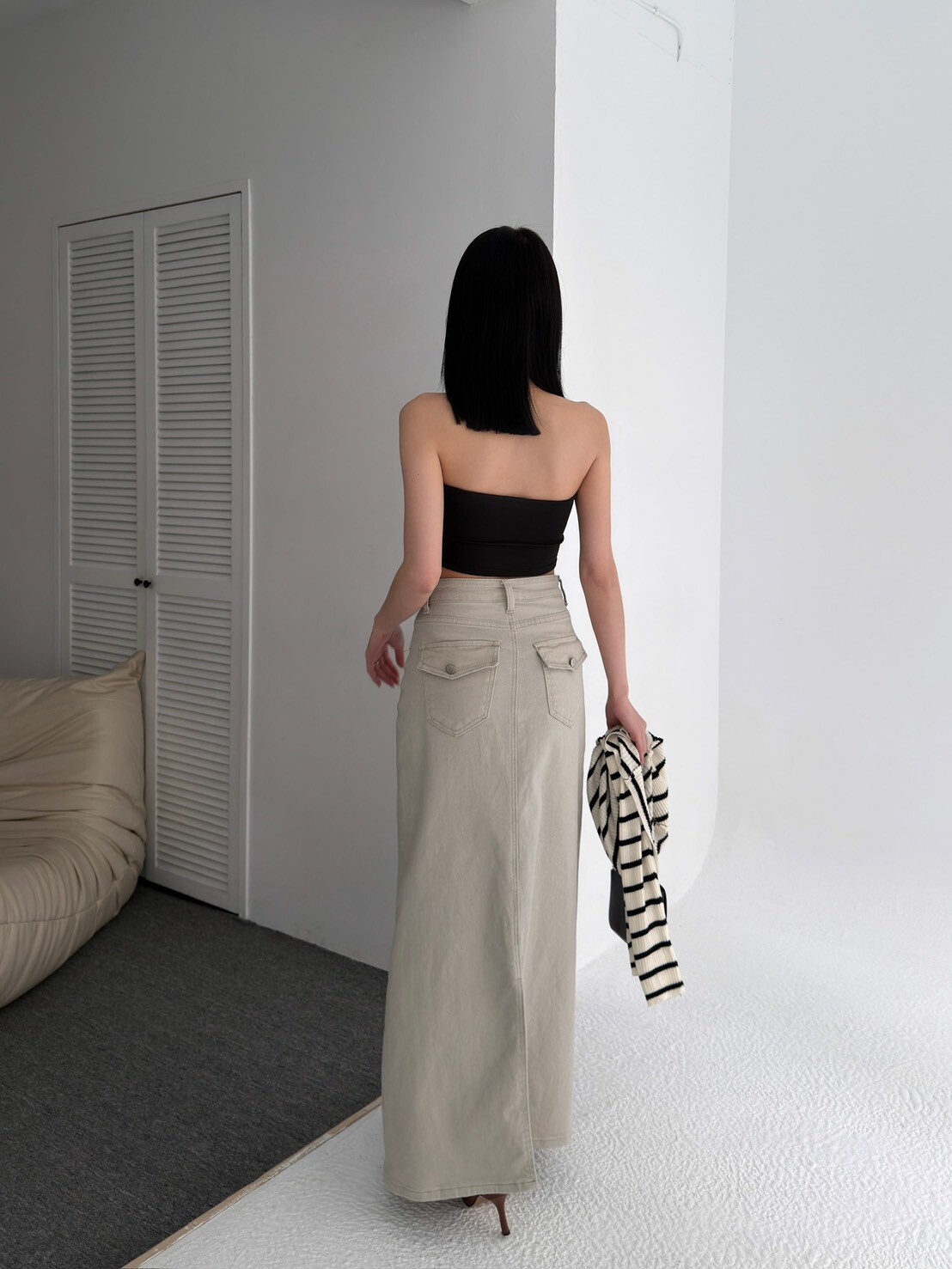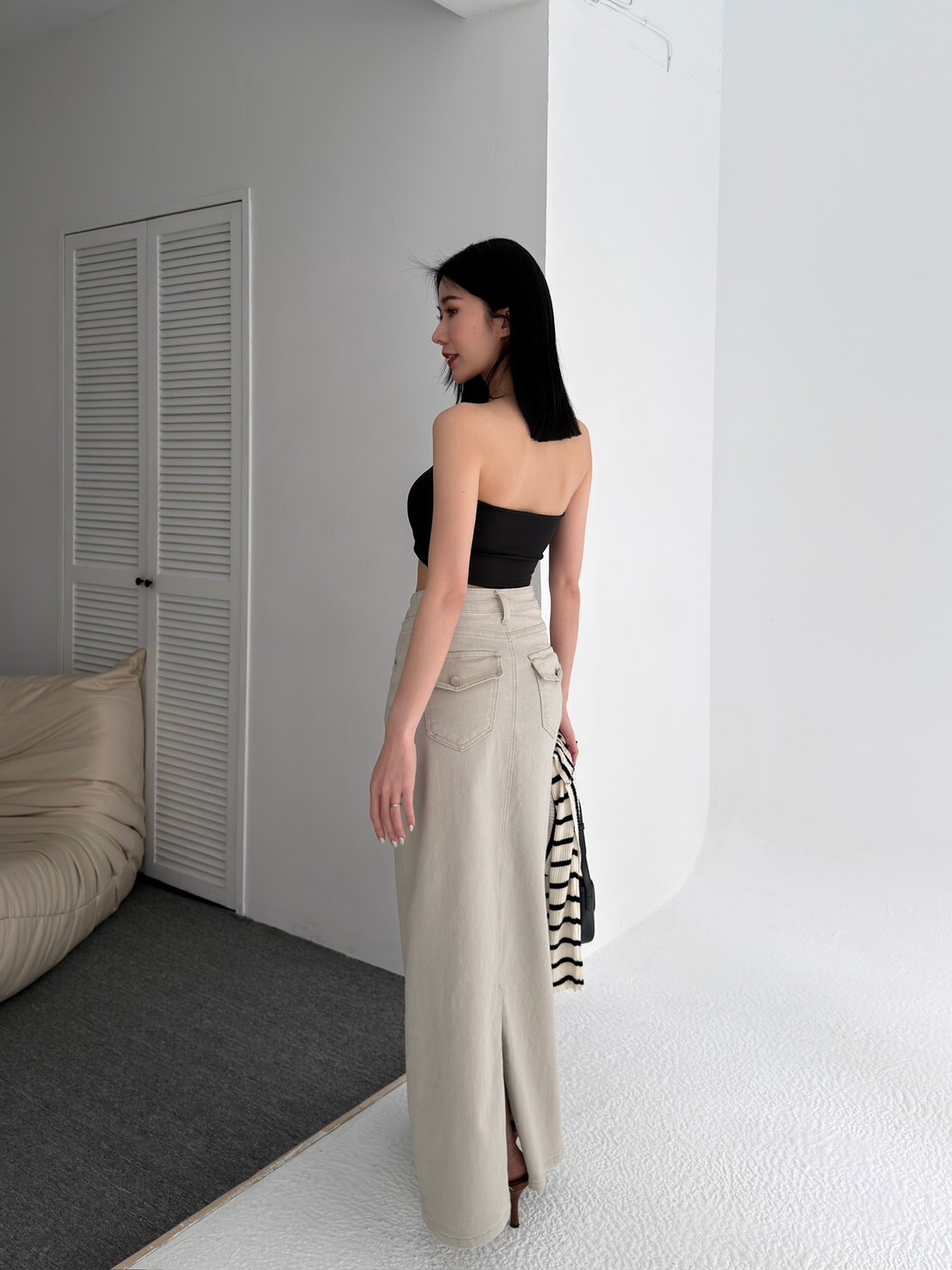大推!後口袋彈性牛仔長裙