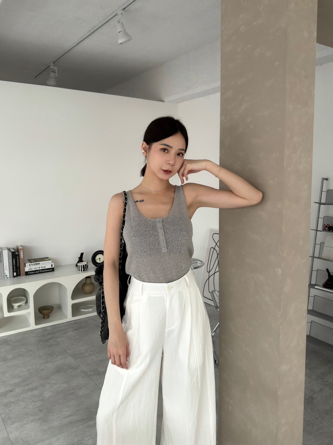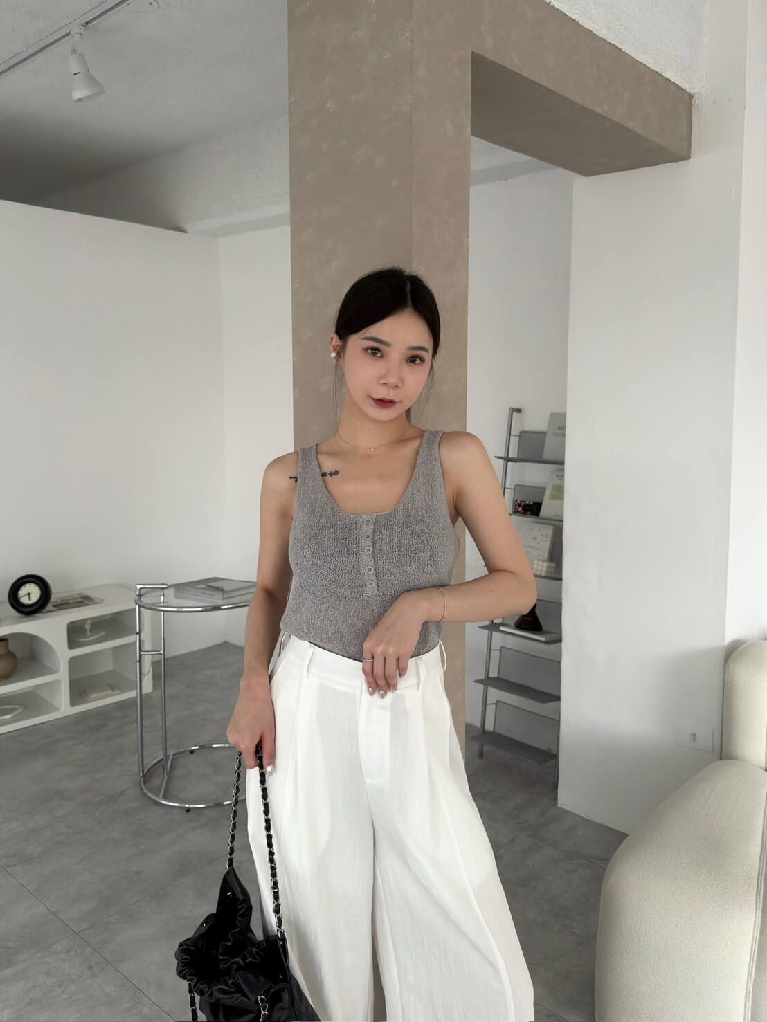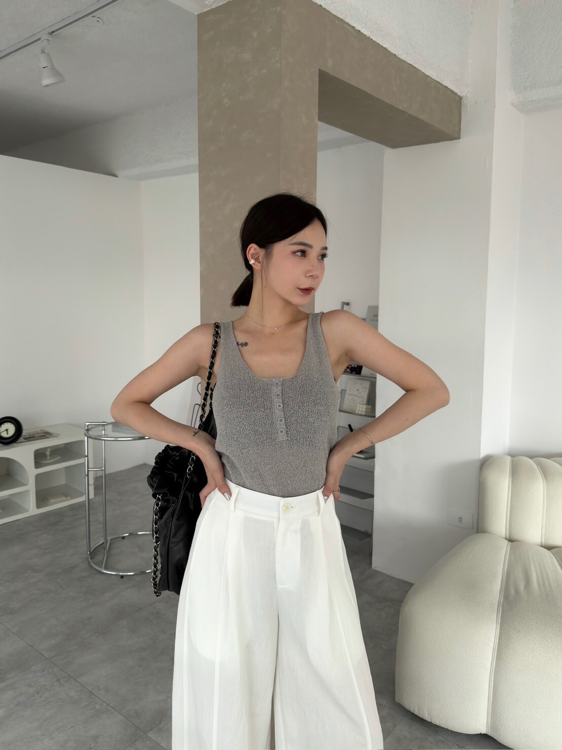 自留款捲邊針織背心