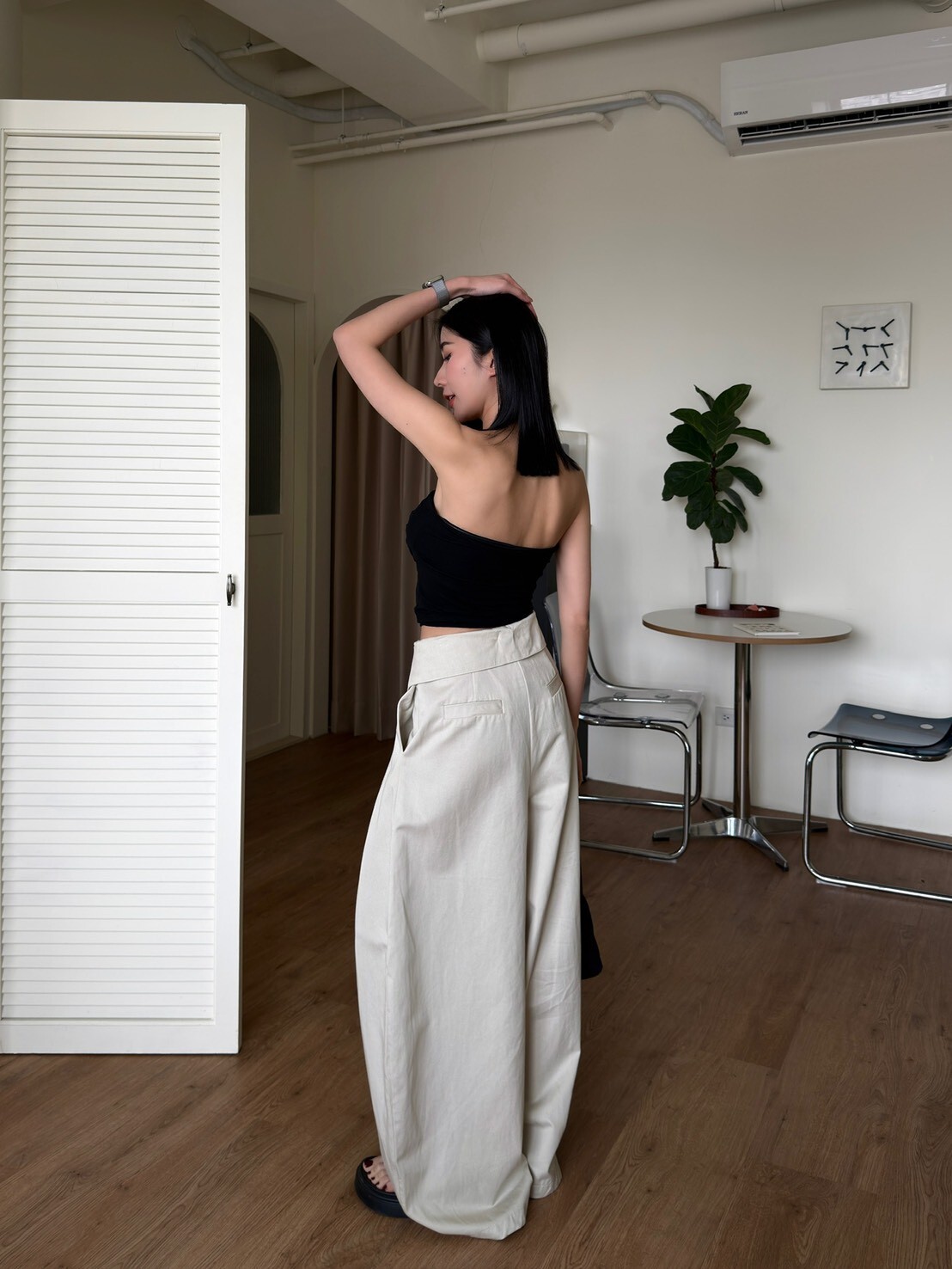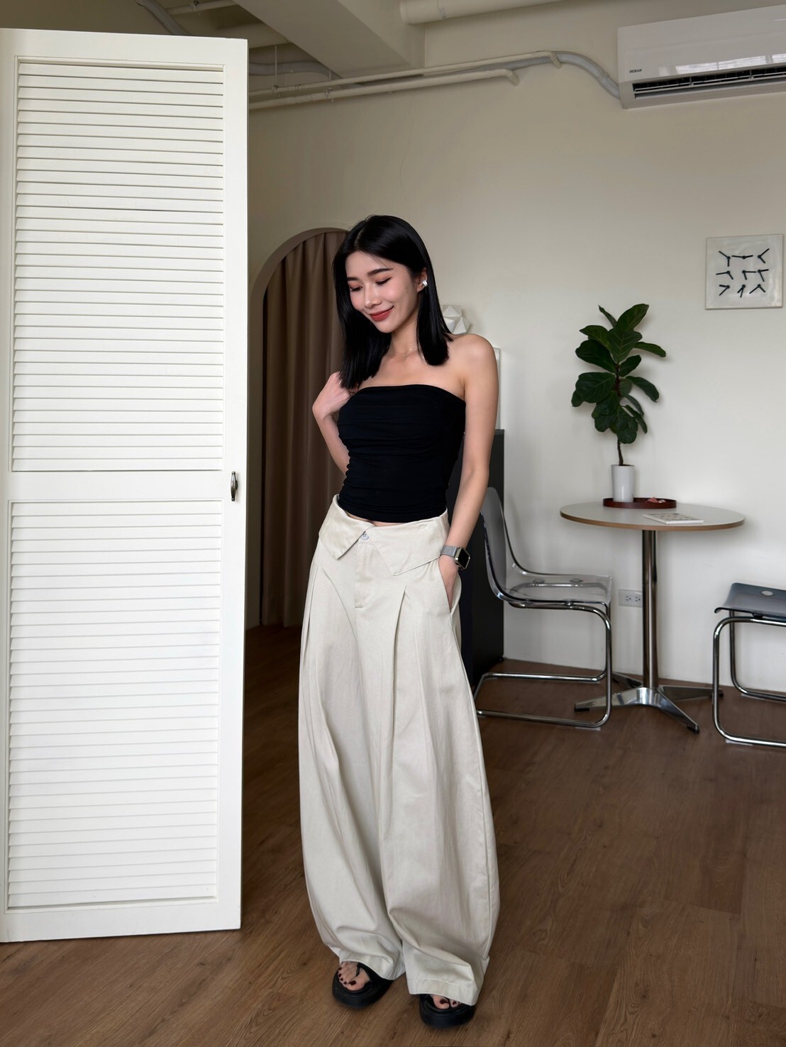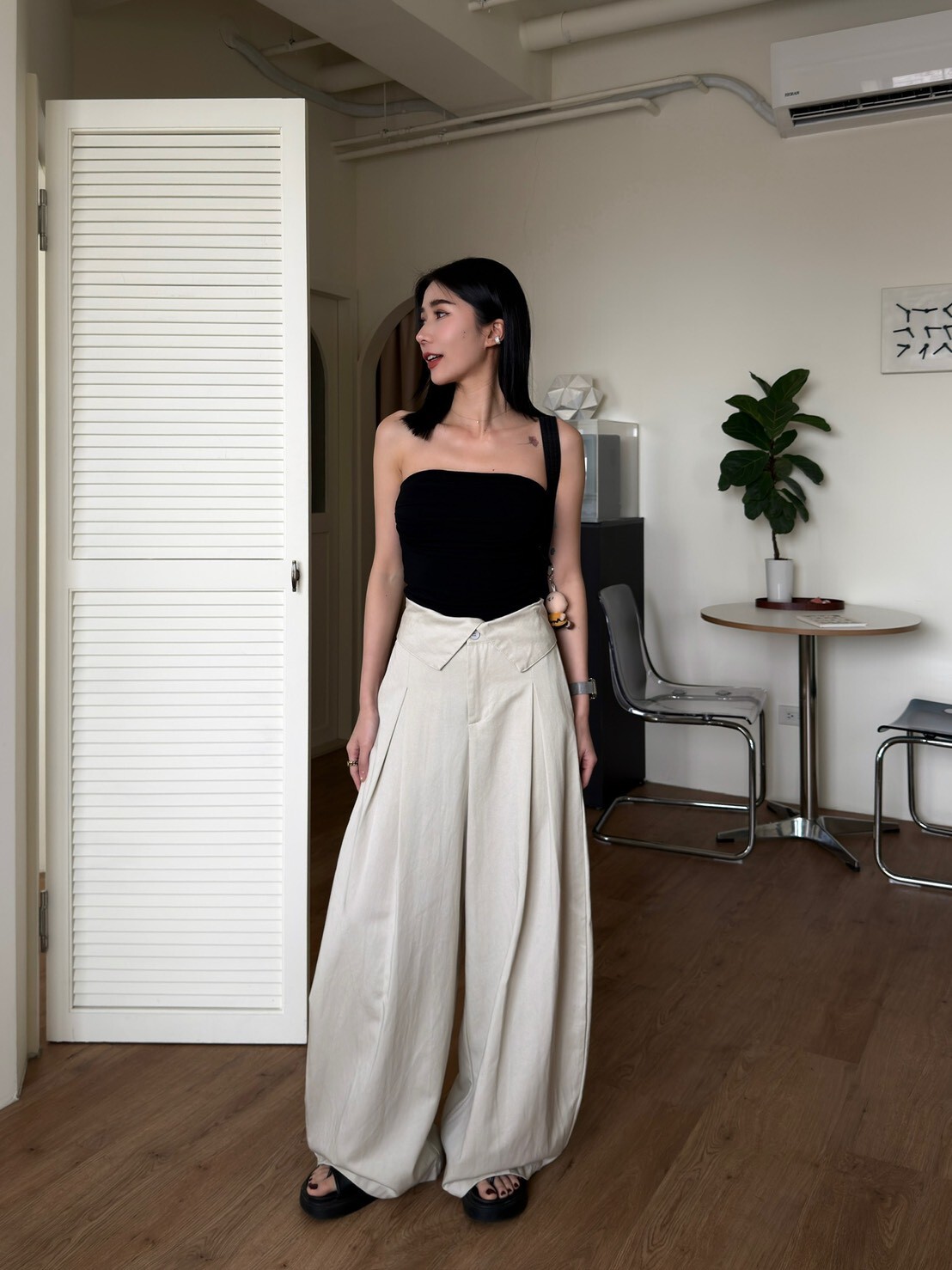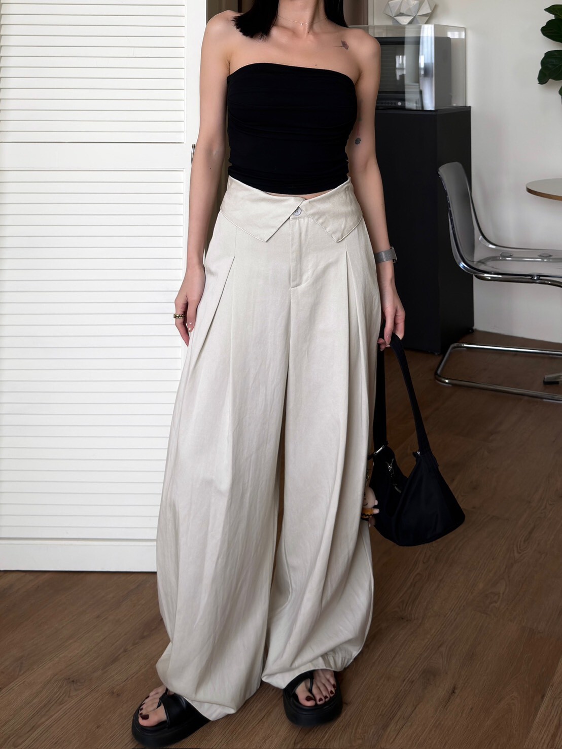 褲頭反折造型西裝繭型褲