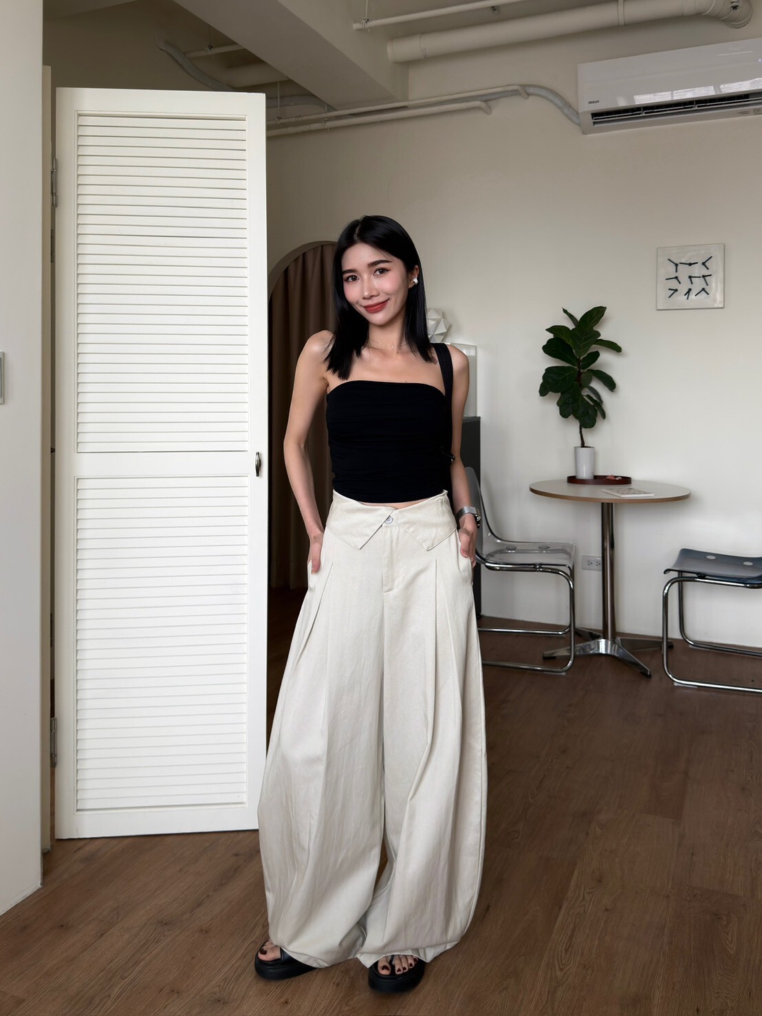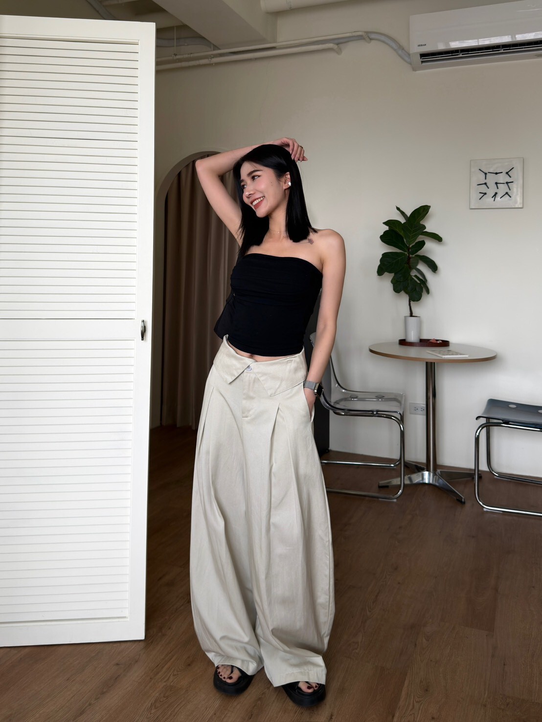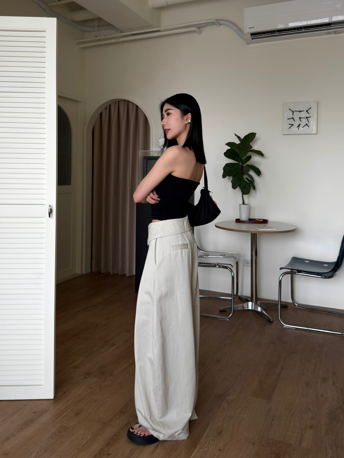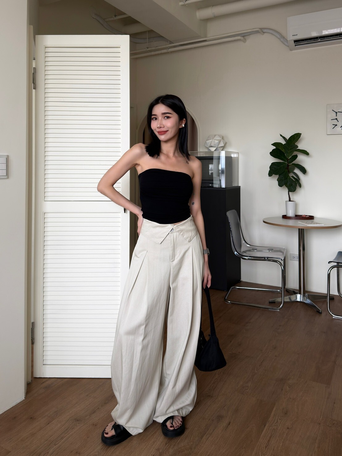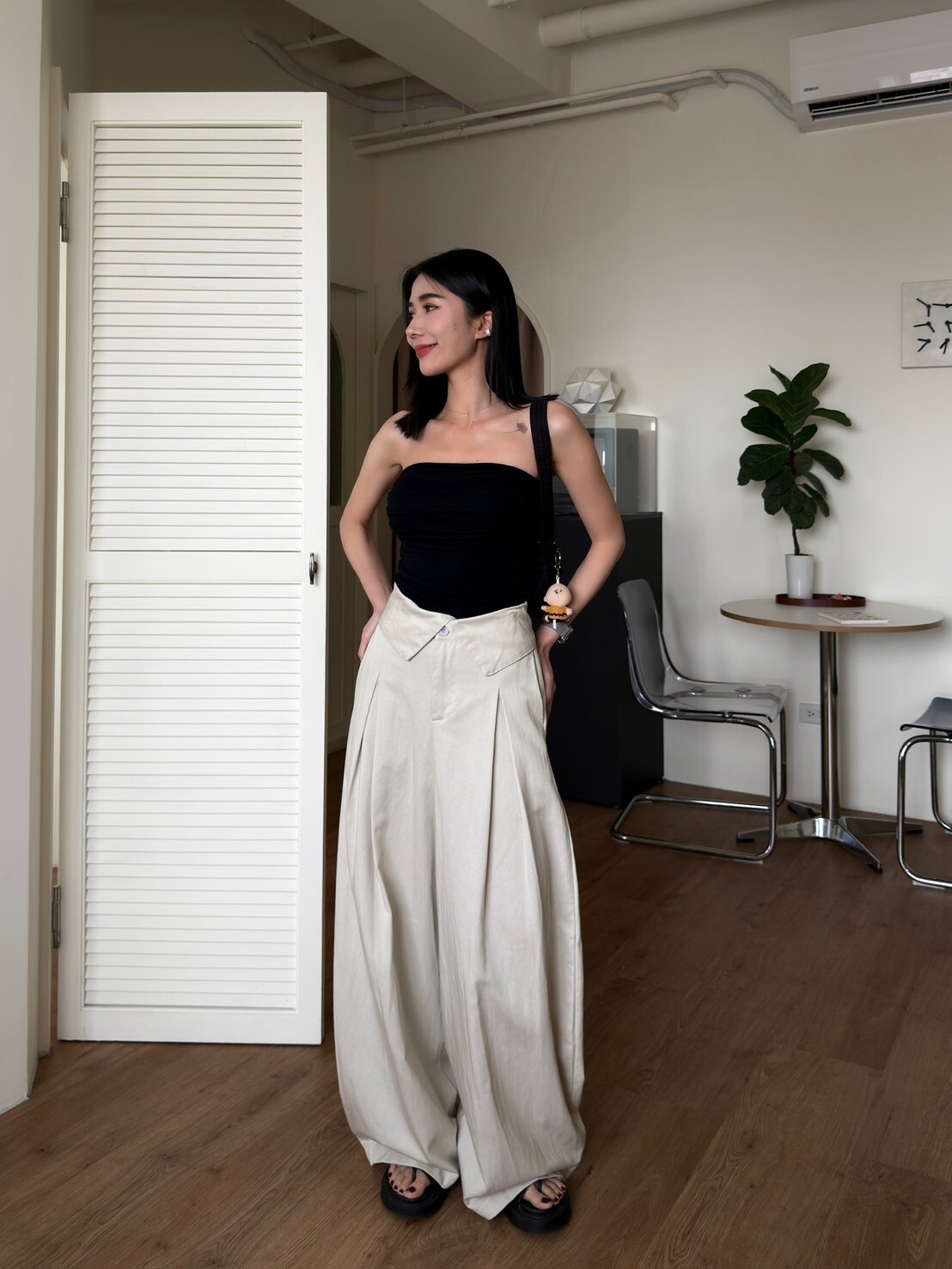 褲頭反折造型西裝繭型褲