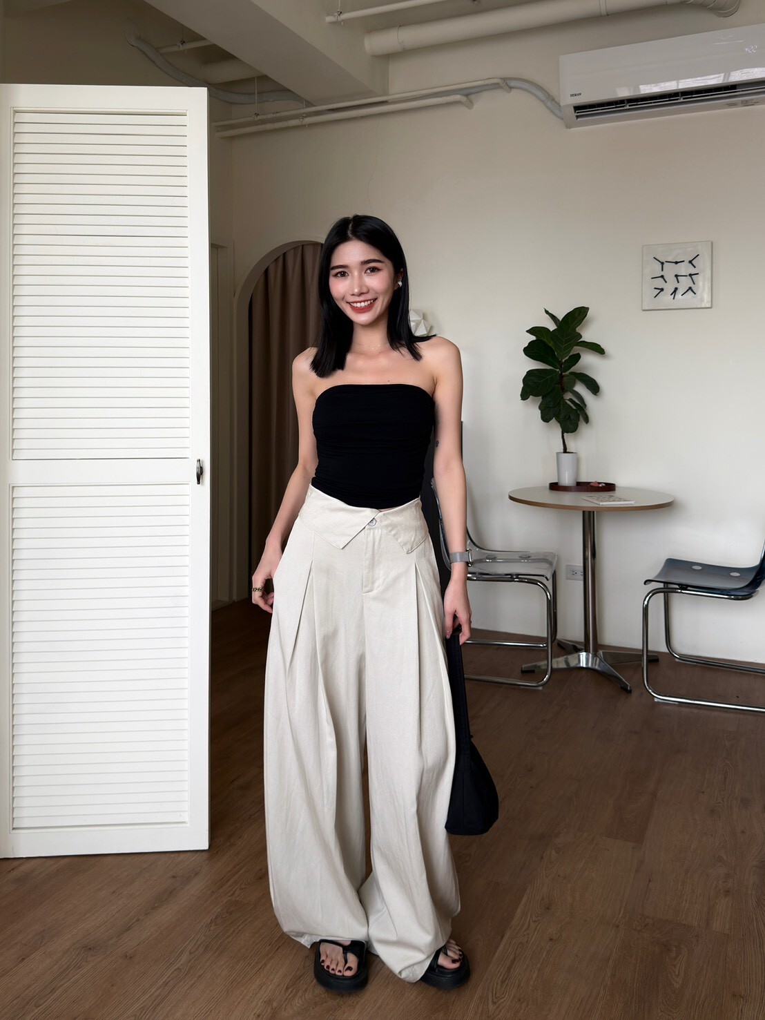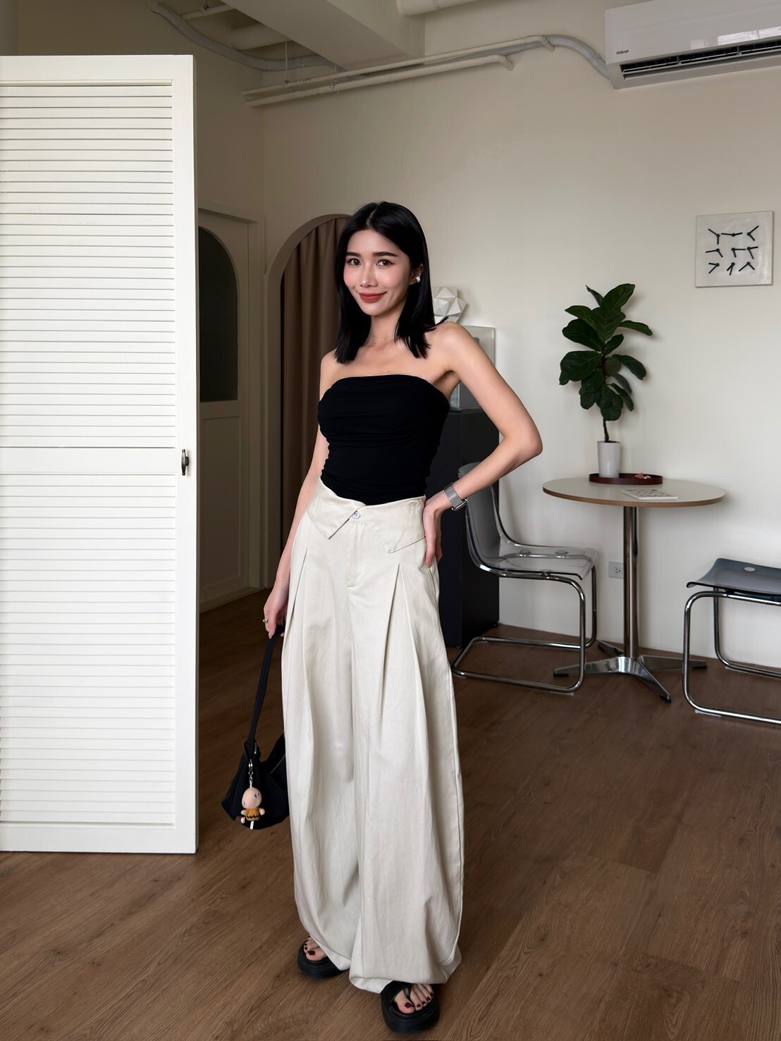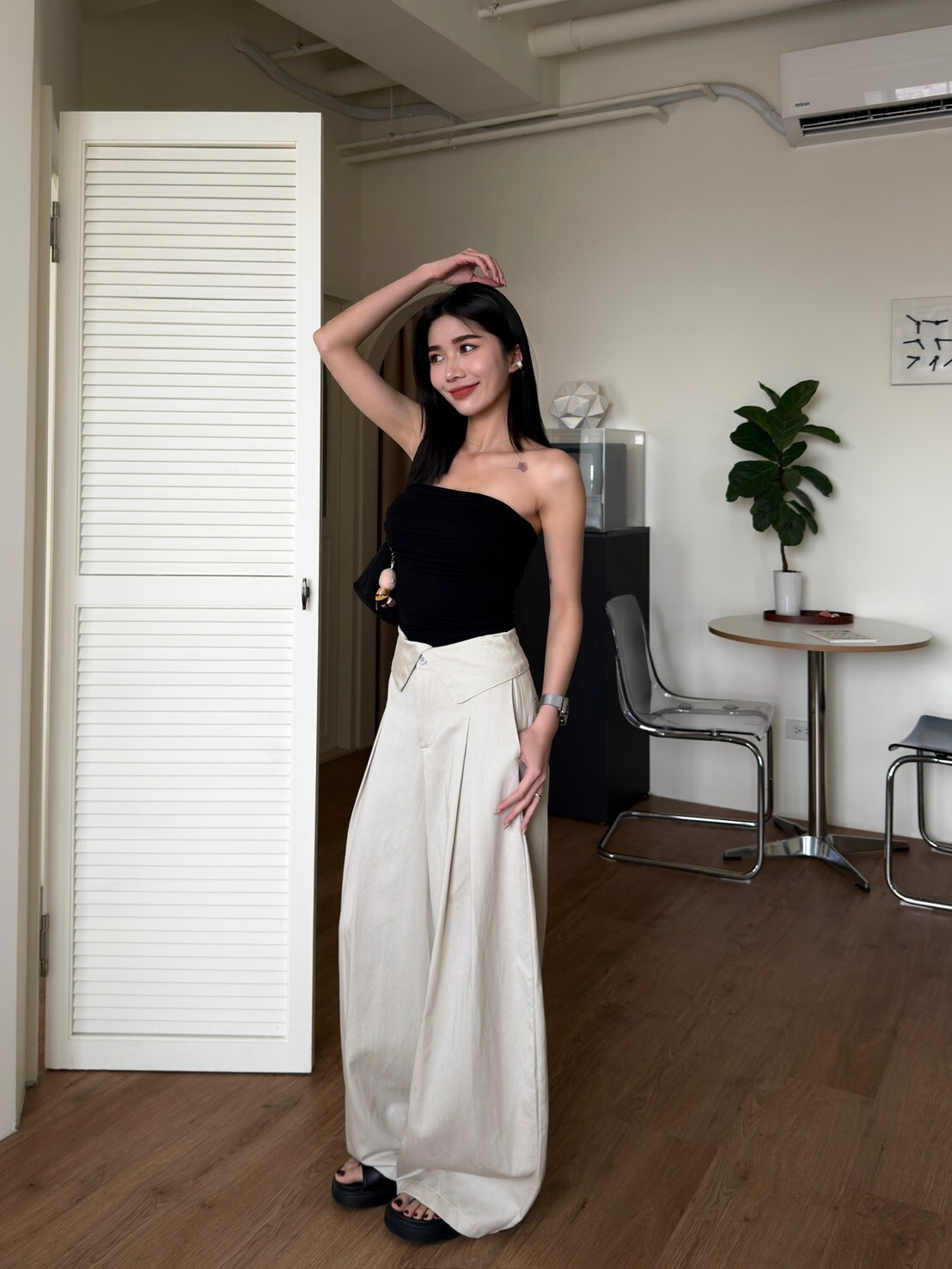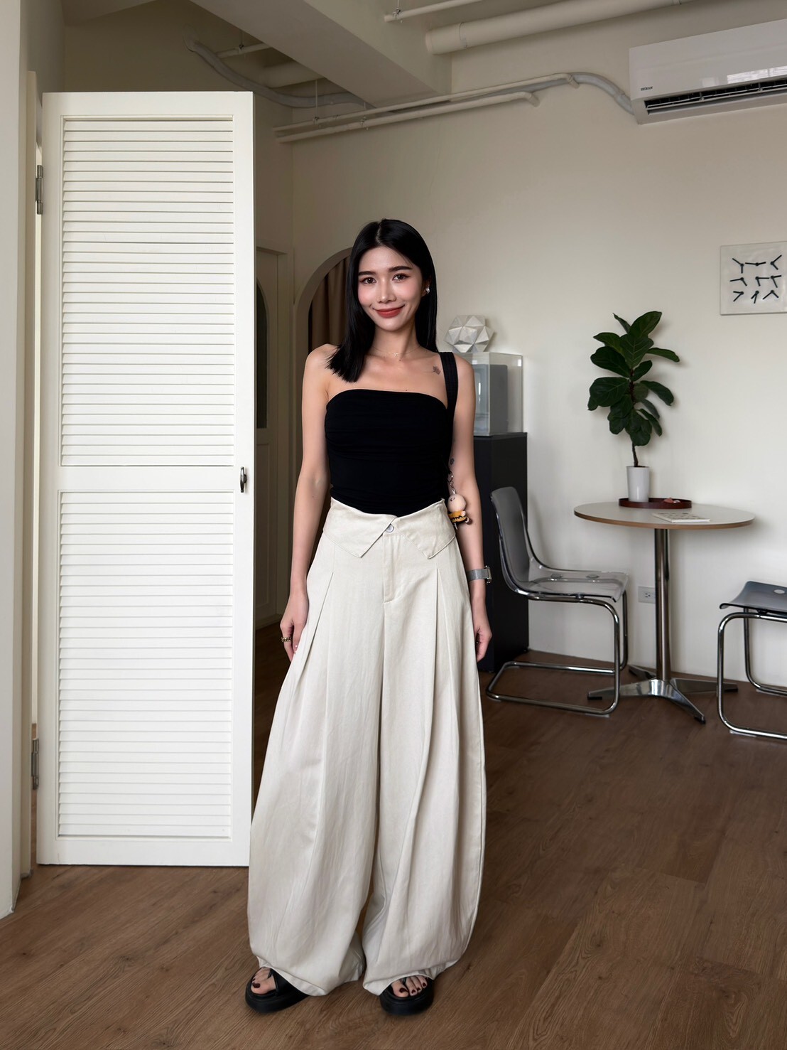 褲頭反折造型西裝繭型褲