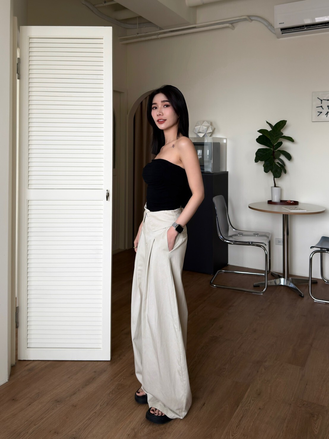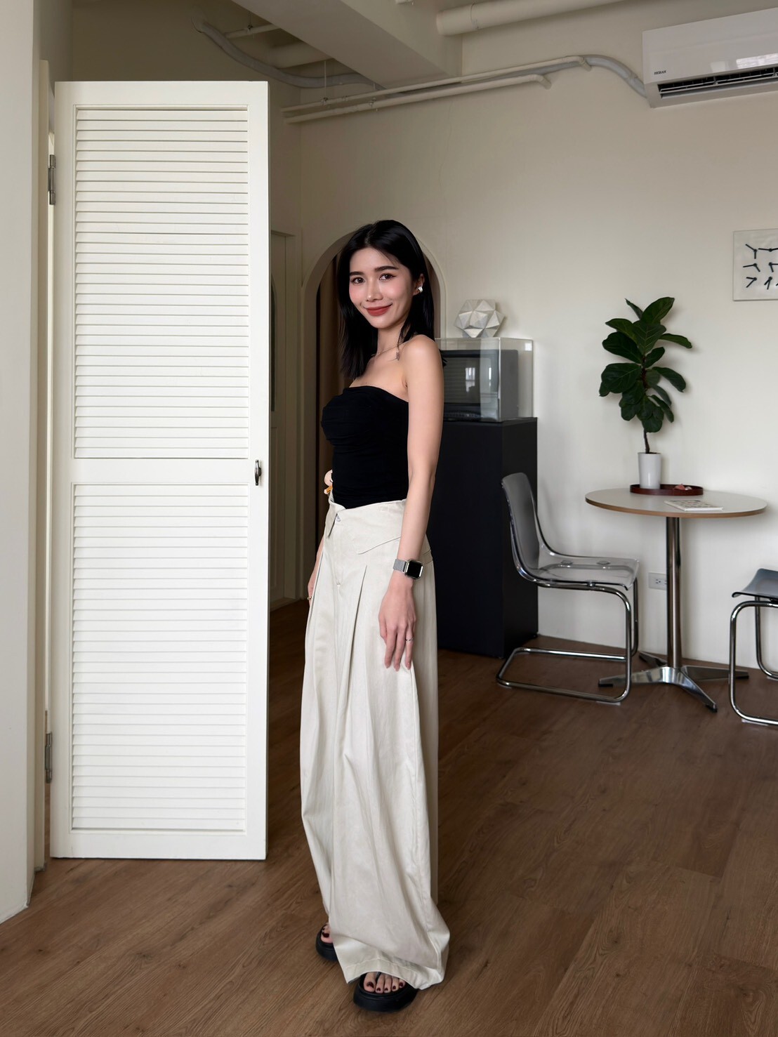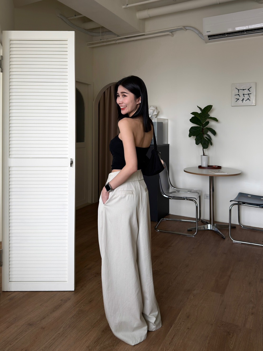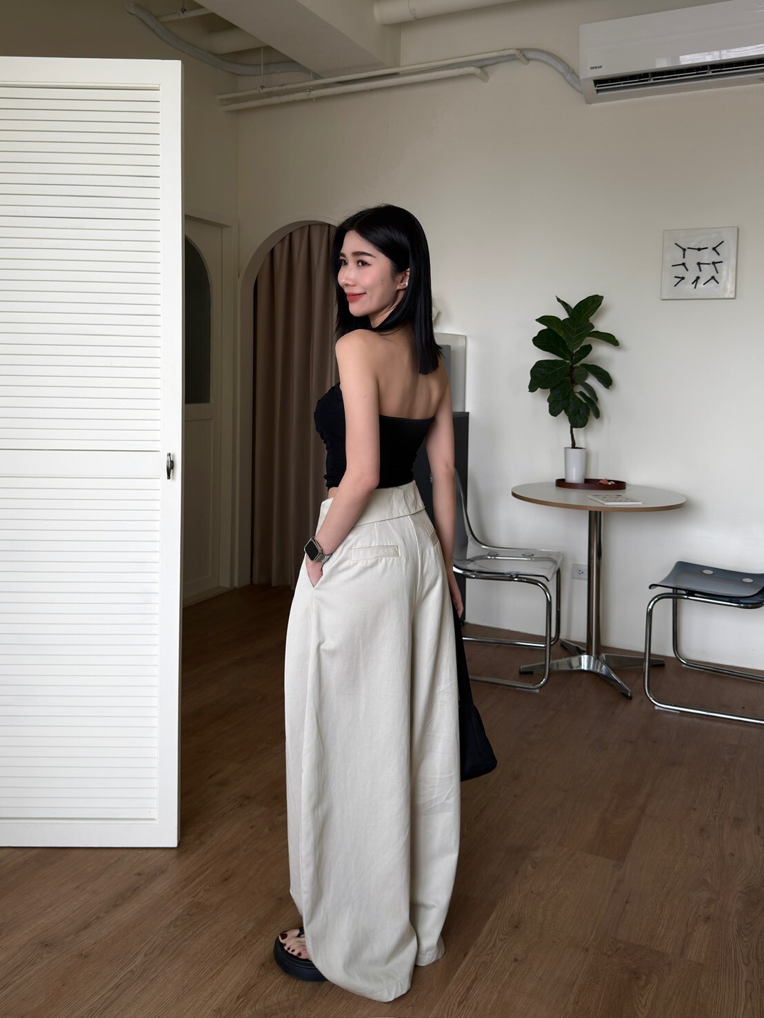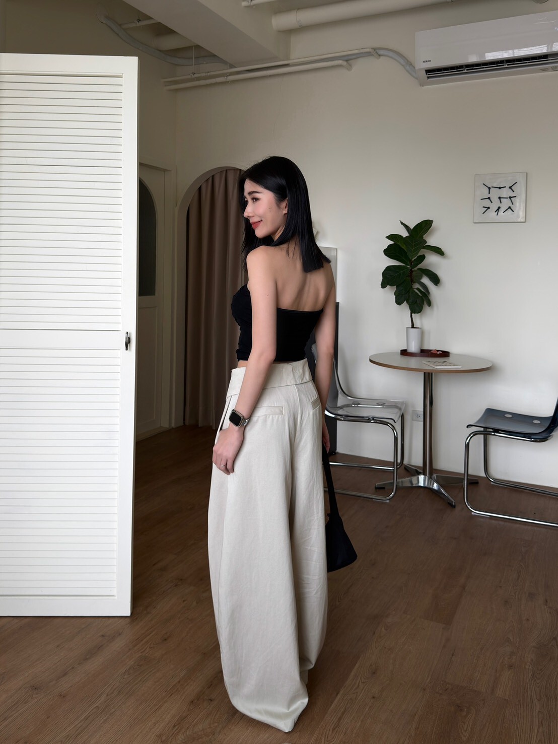 褲頭反折造型西裝繭型褲
