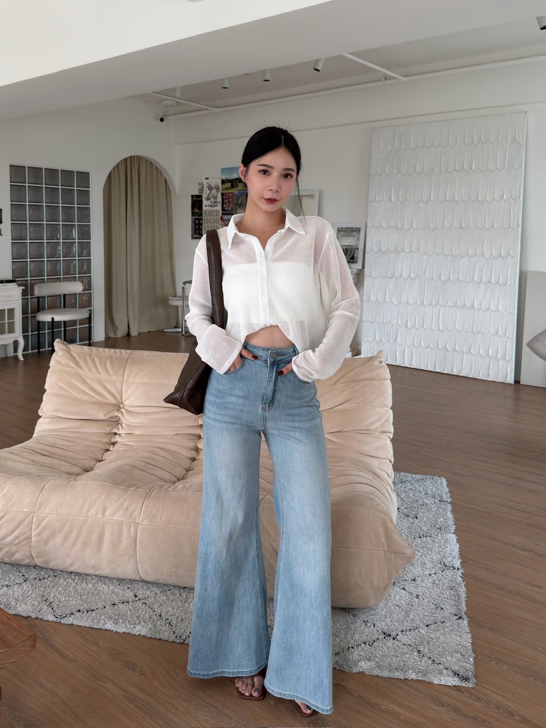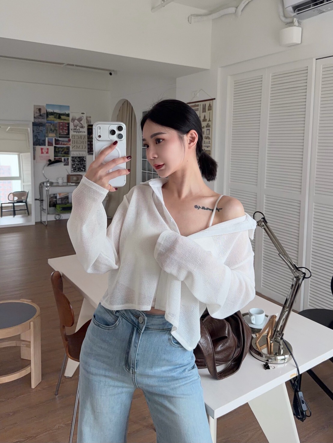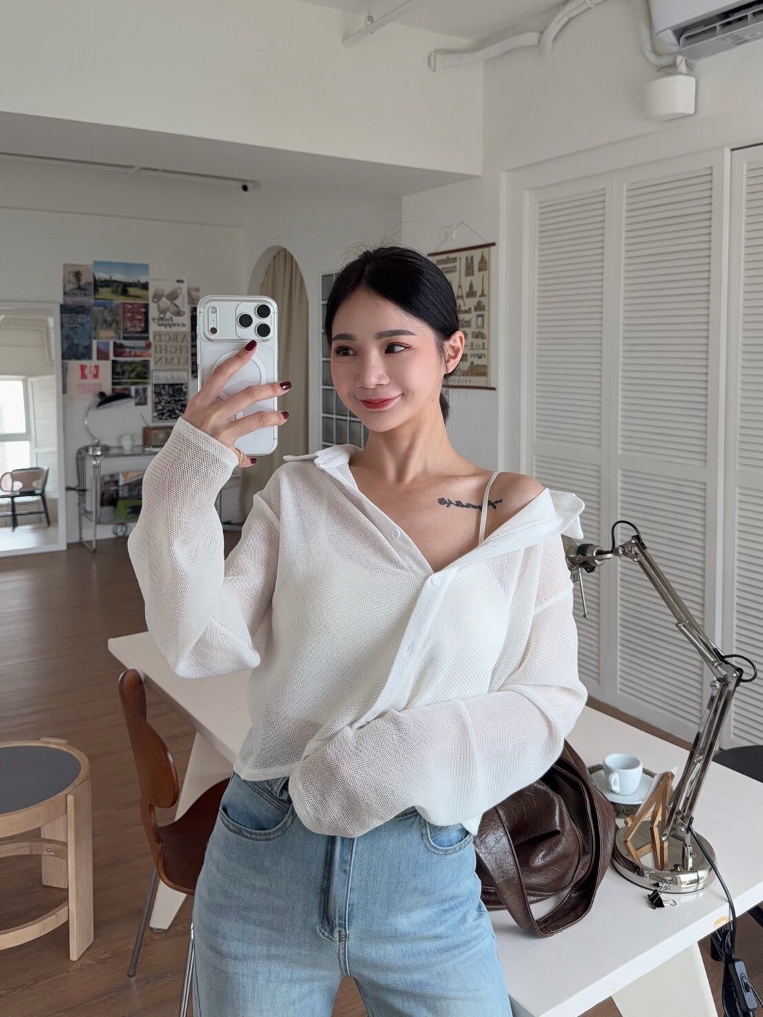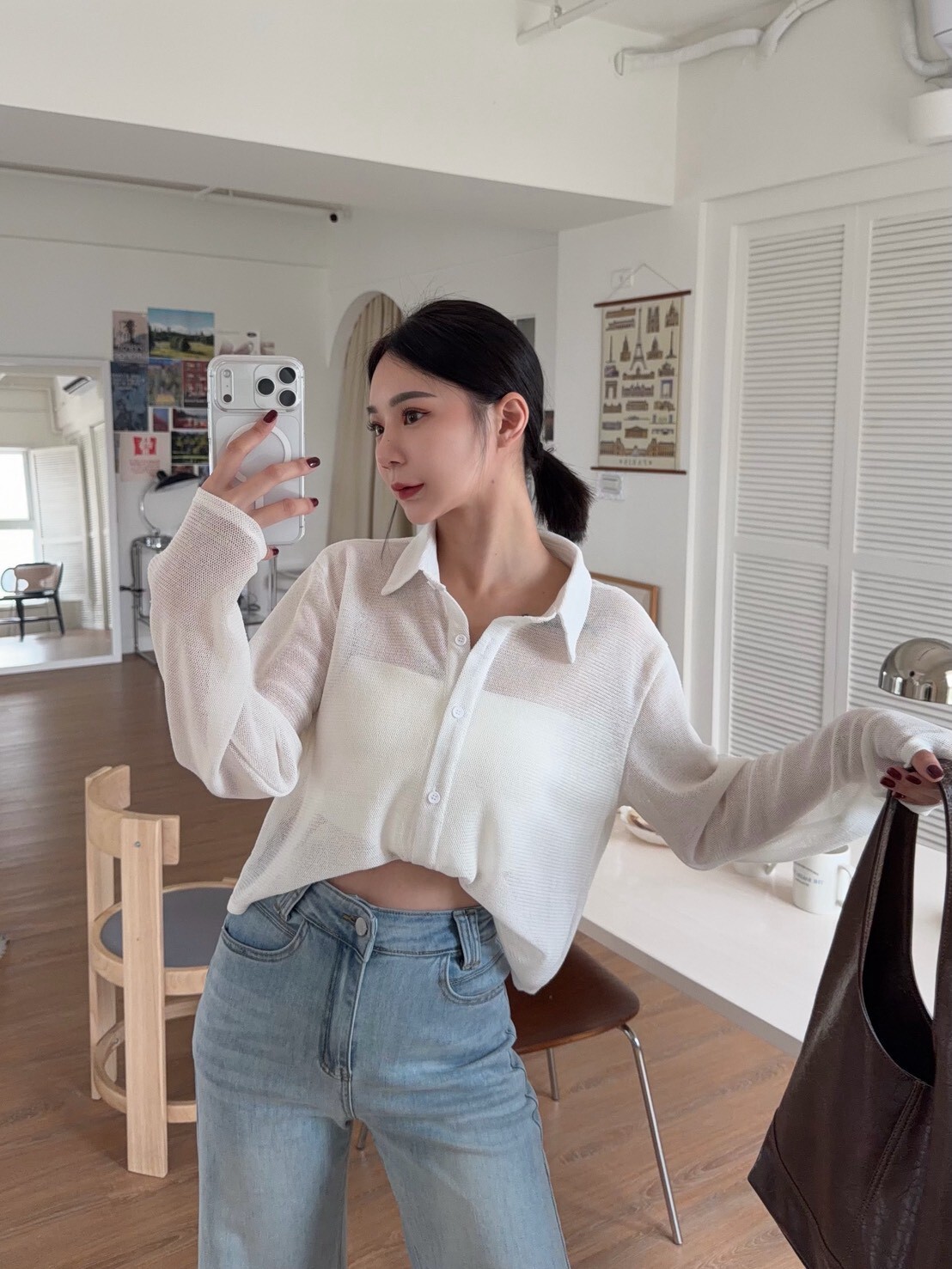 翻領透透排釦上衣