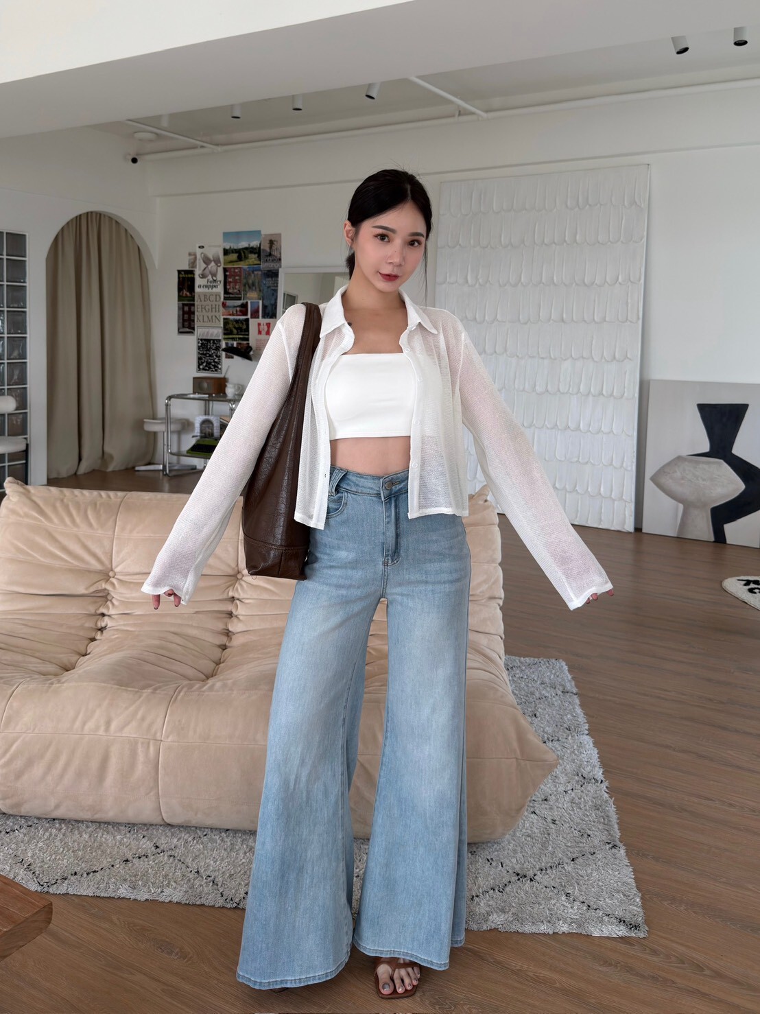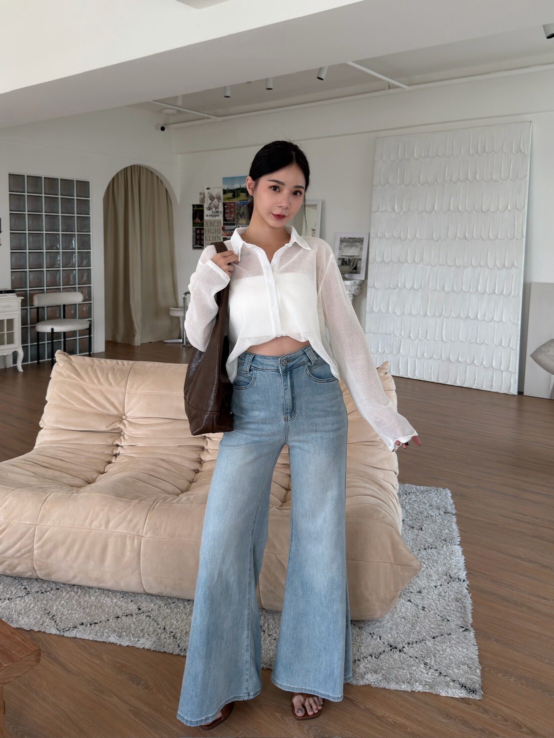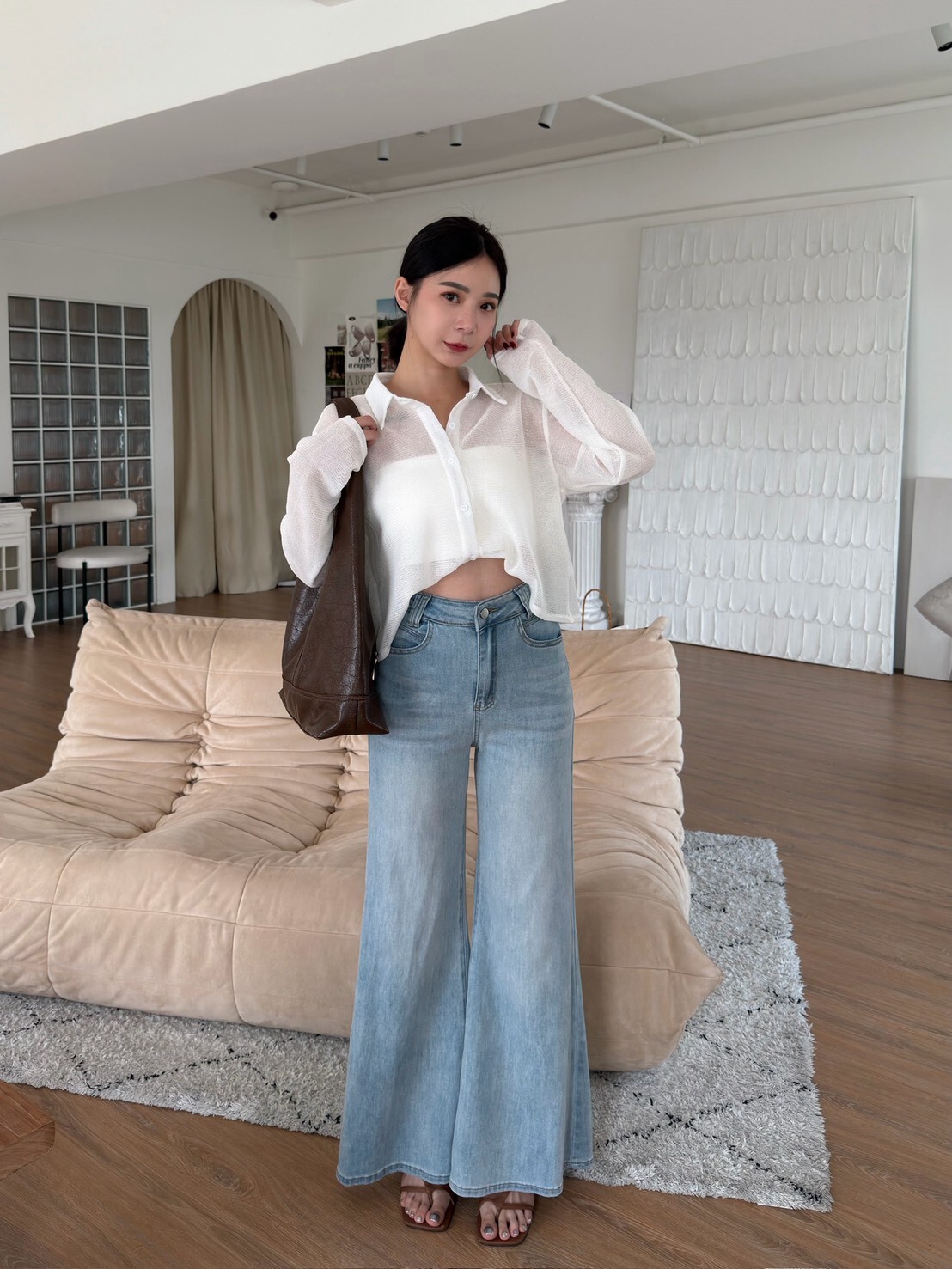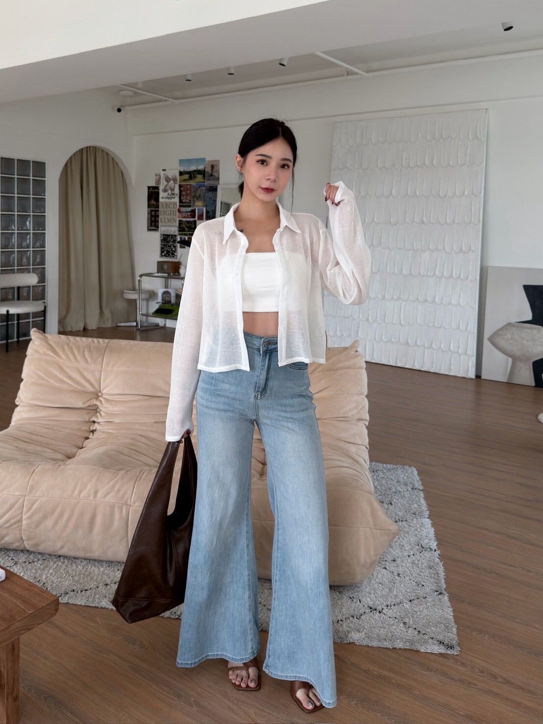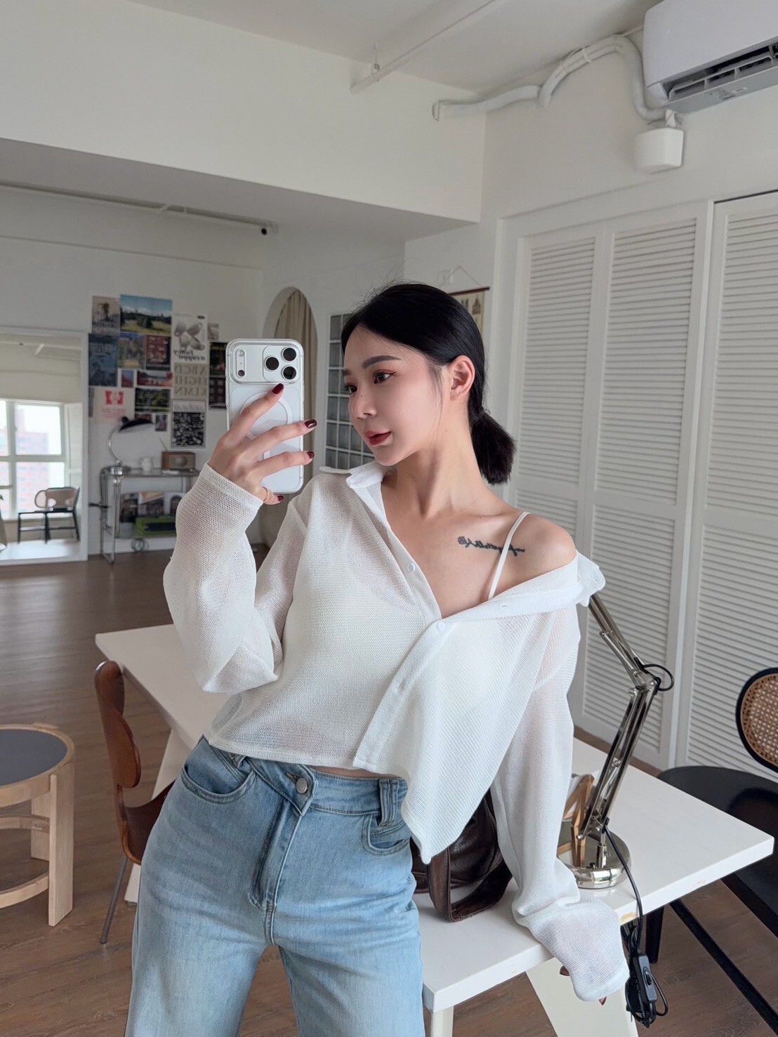 翻領透透排釦上衣