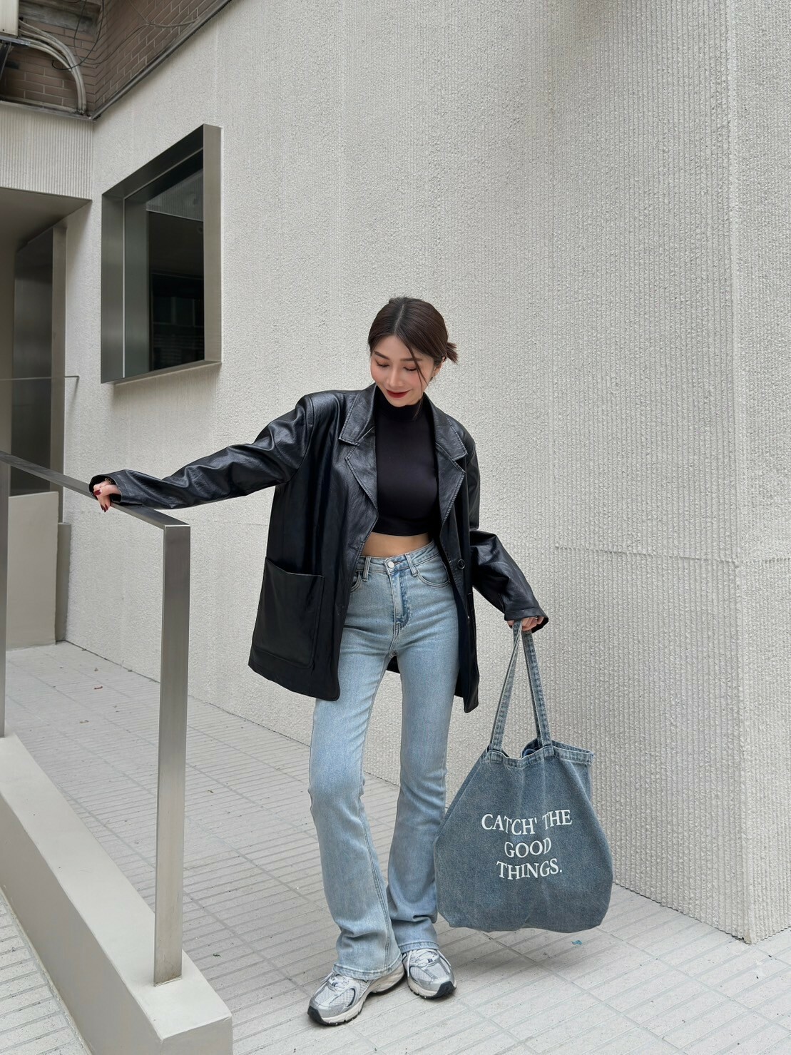 彈力非常好的一款微喇叭牛仔褲