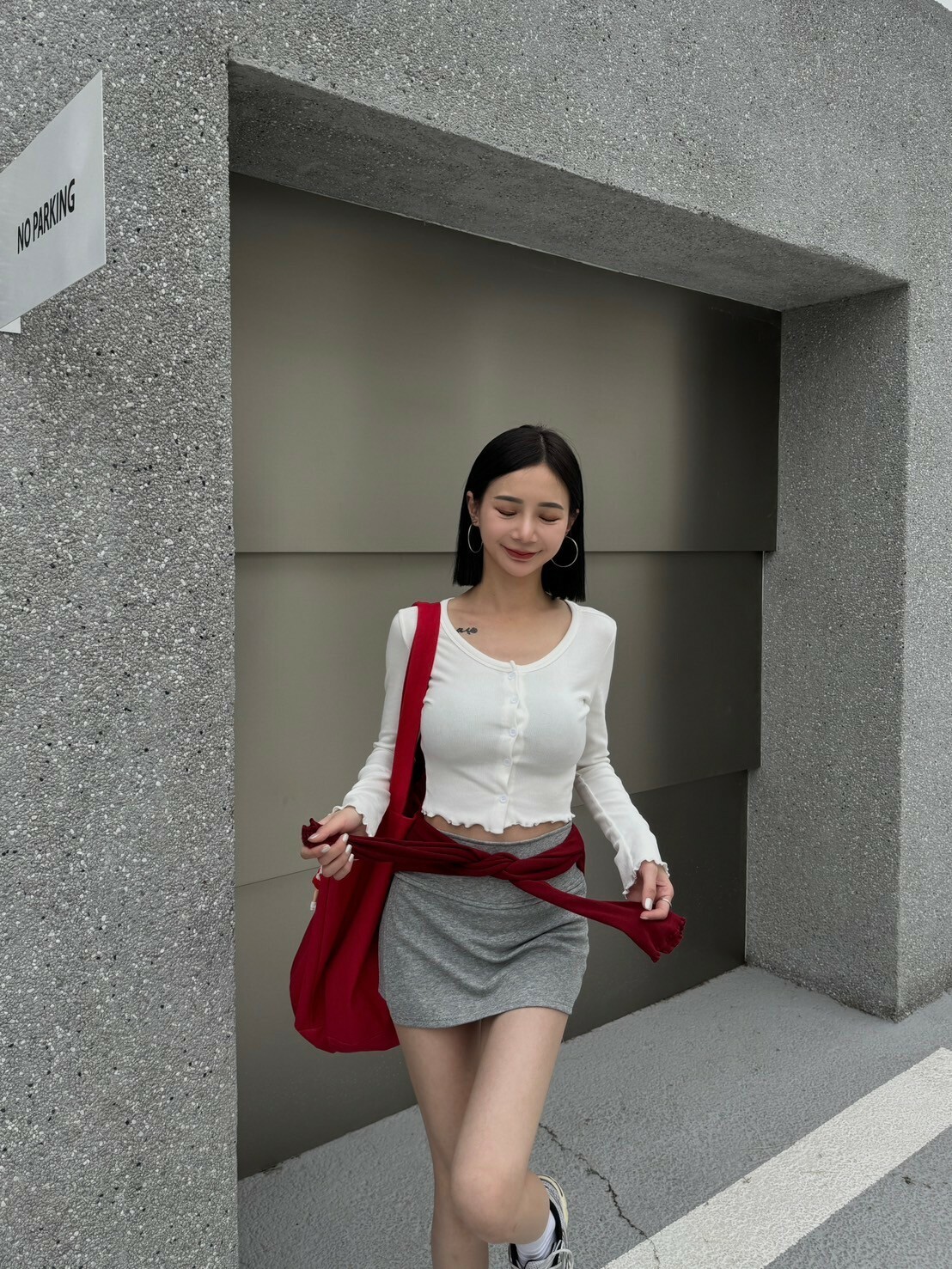 木耳邊彈性排釦上衣